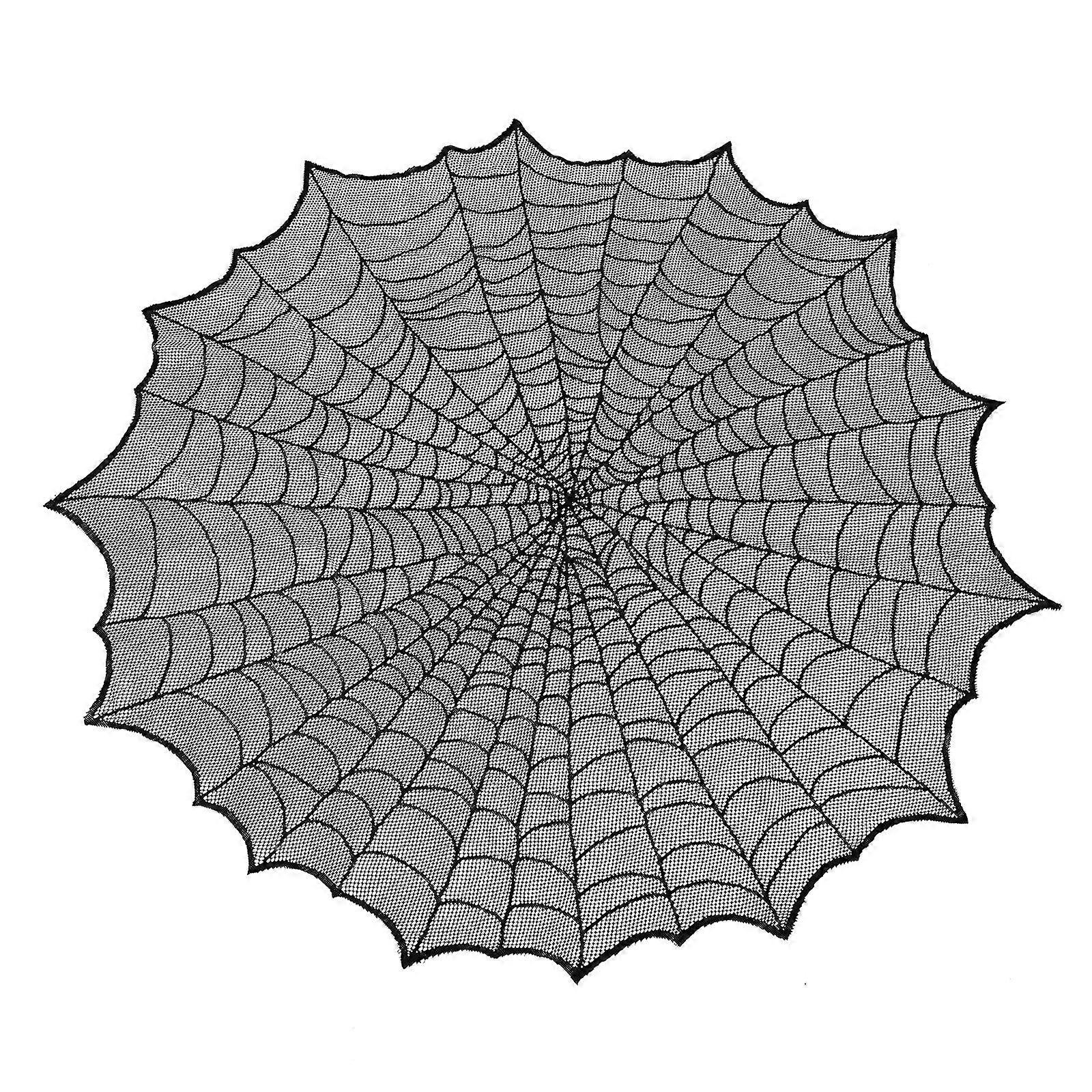 OAVQHLG3B Round Tablecloth Lace Spider Web Halloween Tablecloth 50 " Round Table Topper for Halloween Table Decorations