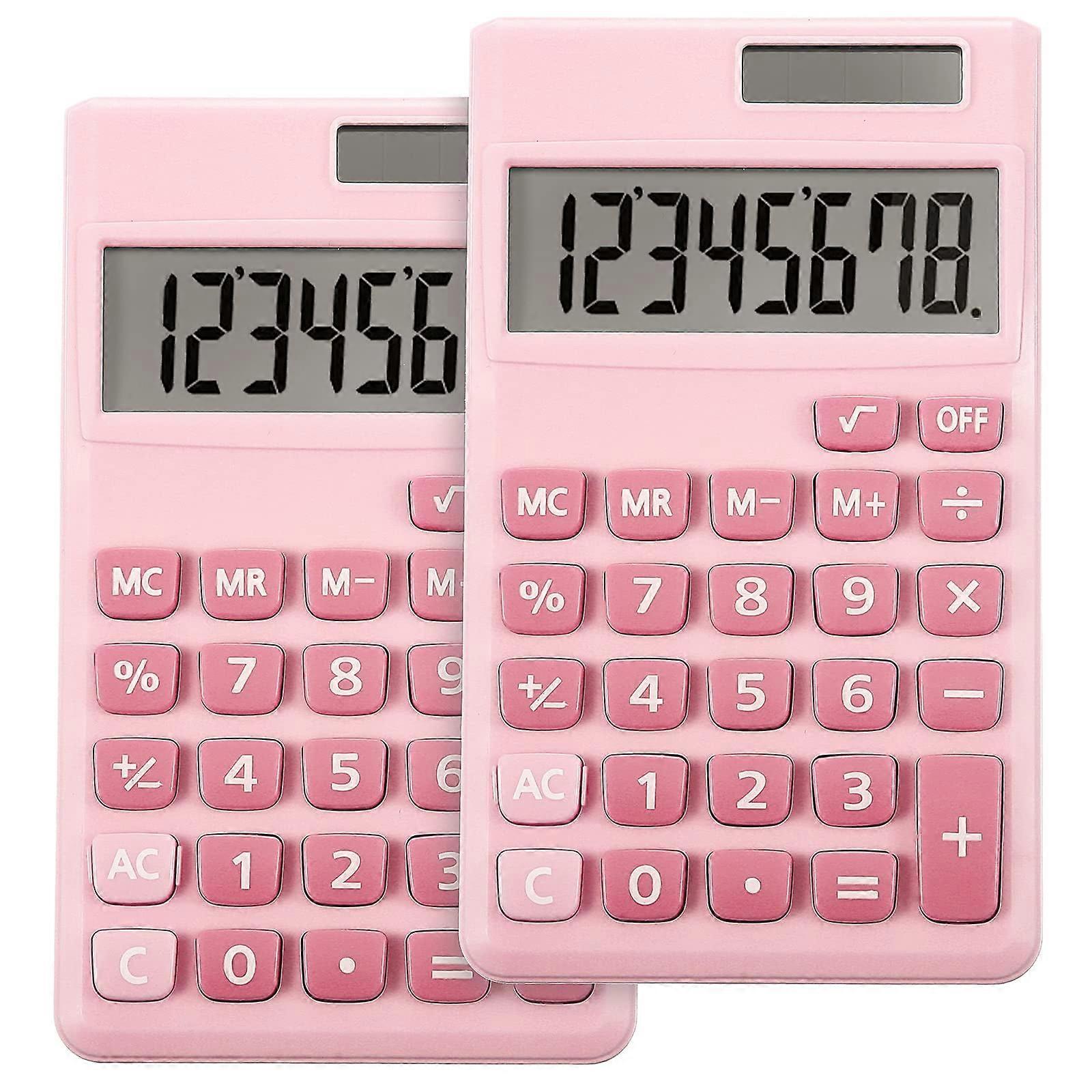 OBOSOE 2Pcs Mini 8-Digit LCD Calculator, Solar/Battery Powered, Pocket Size Desktop Calc for Kids Home School (Pink)