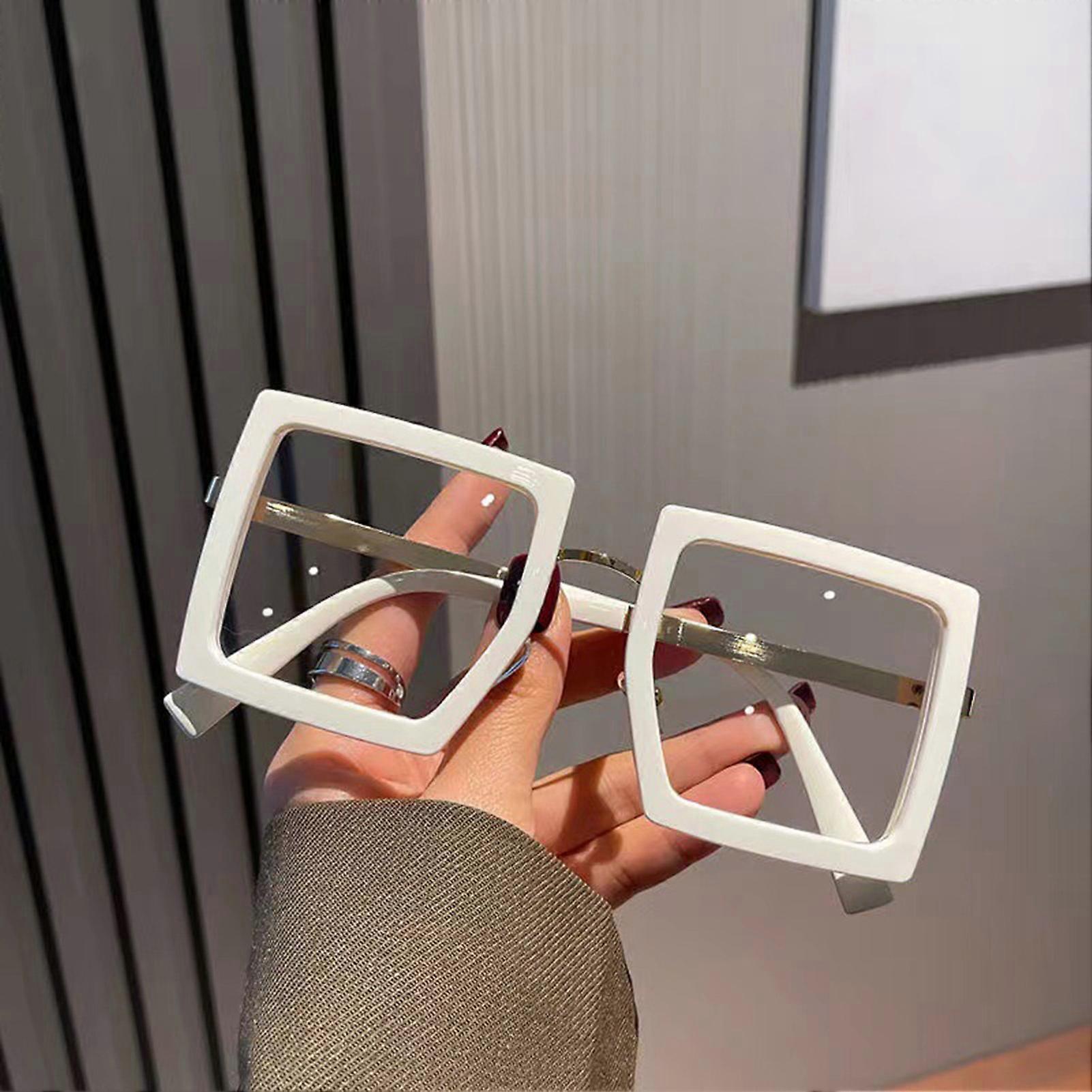 Blue Light Filter Glasses Large Square Frame No Degree Universal Fit Eyeglasses