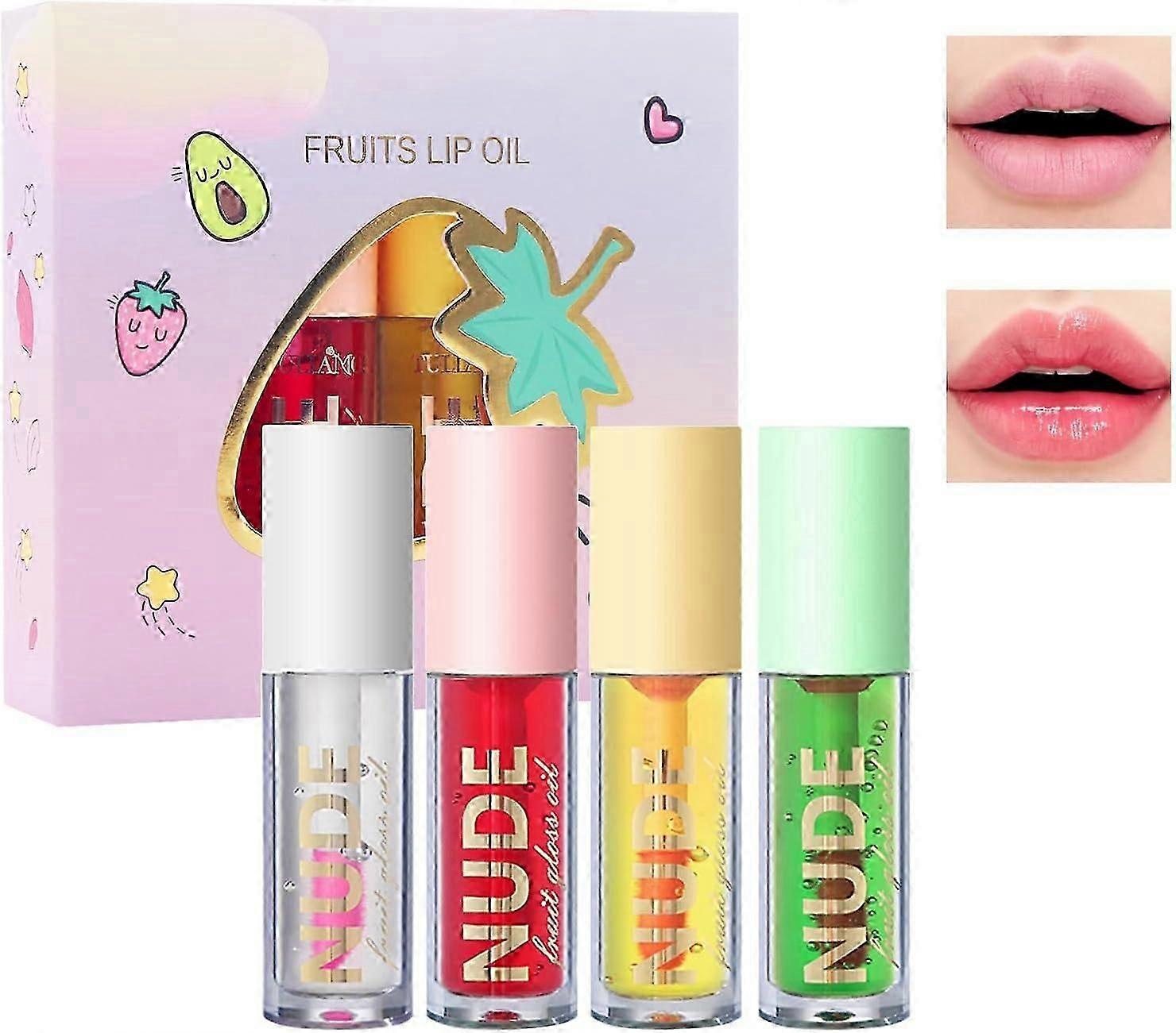 Color Changing Lip Oil, 4 Colors Hydrating Plumping Lip Oil, Nourishing Lip Oil, Clear Fruit Flavoured Hydrating Lip Glaze