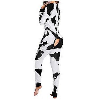 Onesies Print Jumpsuit Women Casual Long Sleeve Button-down Front Functional Buttoned Flap Adults Playsuit Pajamas