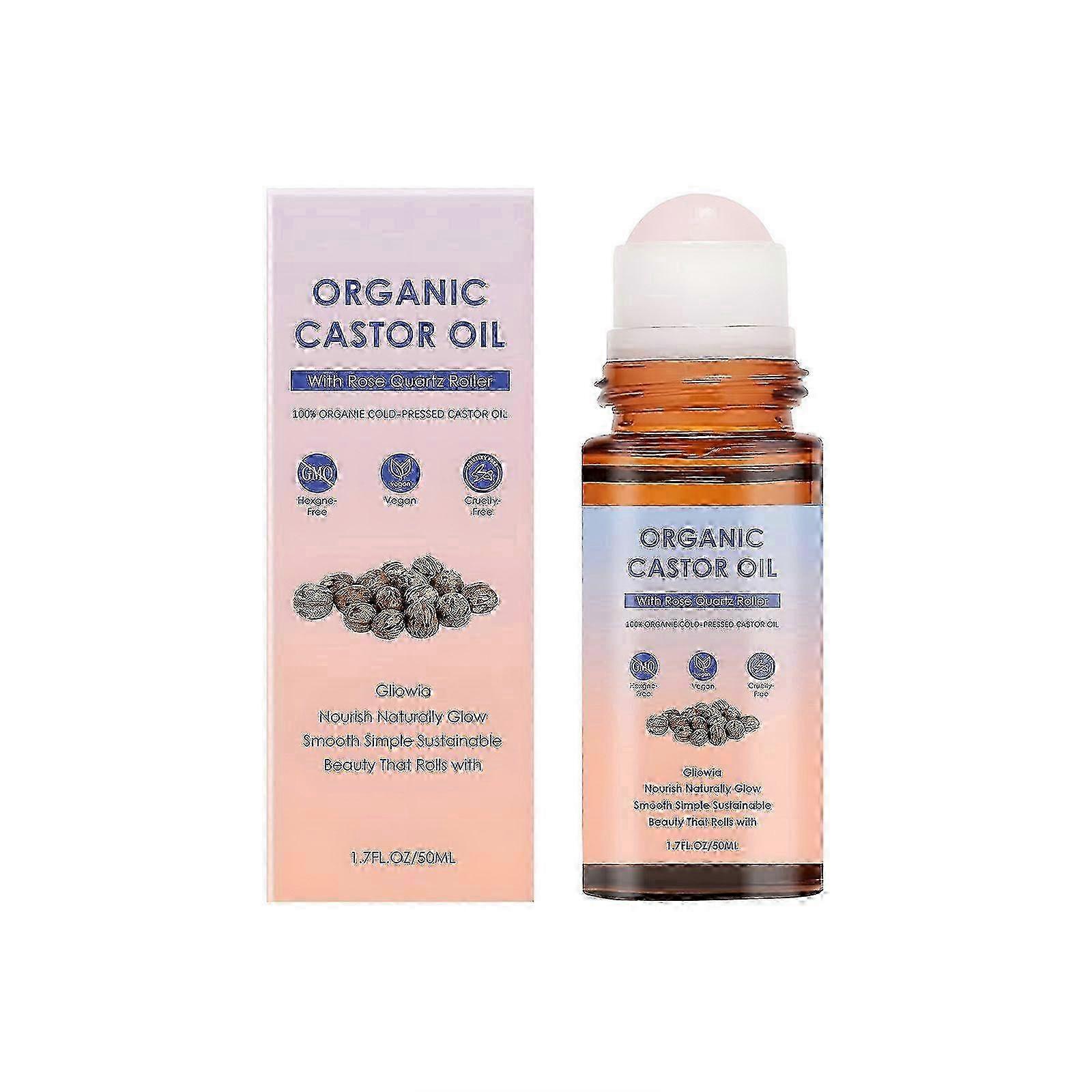 Organic Castor Oil Roll-On with Rose Quartz, Pure Cold-Pressed for Skin, Eyebrows and Eyelashes, Hexane-Free