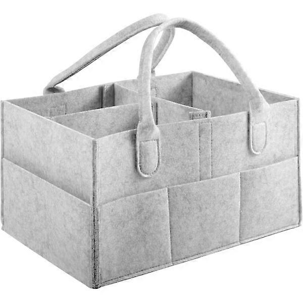 Baby Diaper Storage Organizer, Felt Nappy Caddy Bag with Pocket, Portable Basket for Baby Wipes with Compartments (Light Grey)