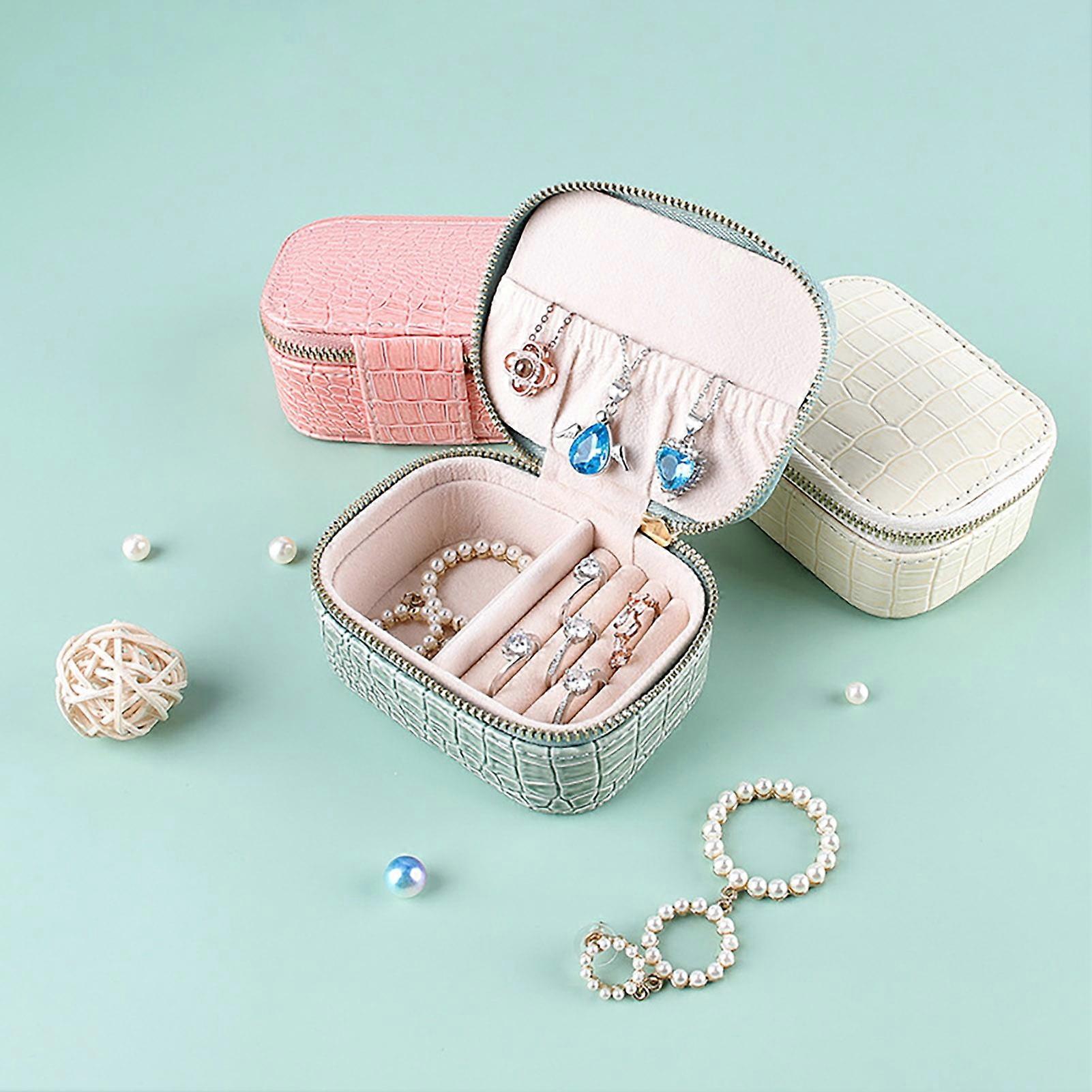 SUSUchens Jewelry Holder Organizer Smooth Zipper Soft Lining Compartment Keep Neat Large Capacity Travel Jewelry Earring Storage Box Purple