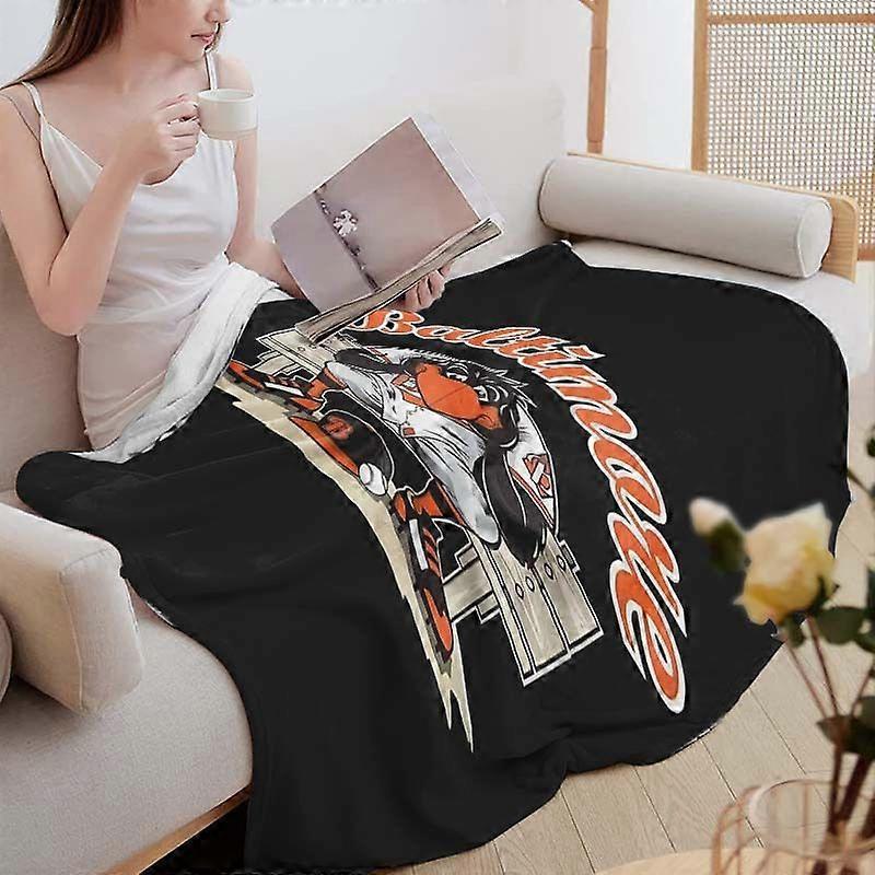 Oriole Logo Print Flannel Blanket - Extra Large Plush Throw, Suitable for Bed and Sofa, Contemporary Design, Ideal for A-WSDCV20
