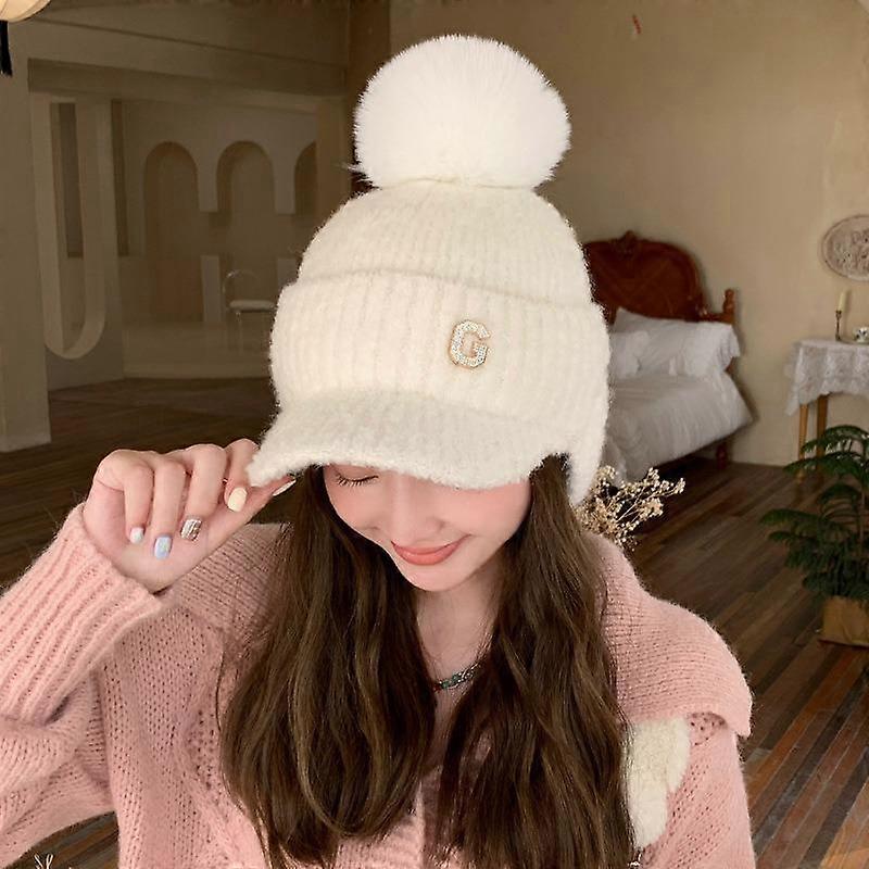 Women's Autumn and Winter Outdoor Warm and Cold Resistant Knitted Yarn Hat with Thick Velvet and Windproof Ear Protection Duckbill Cap