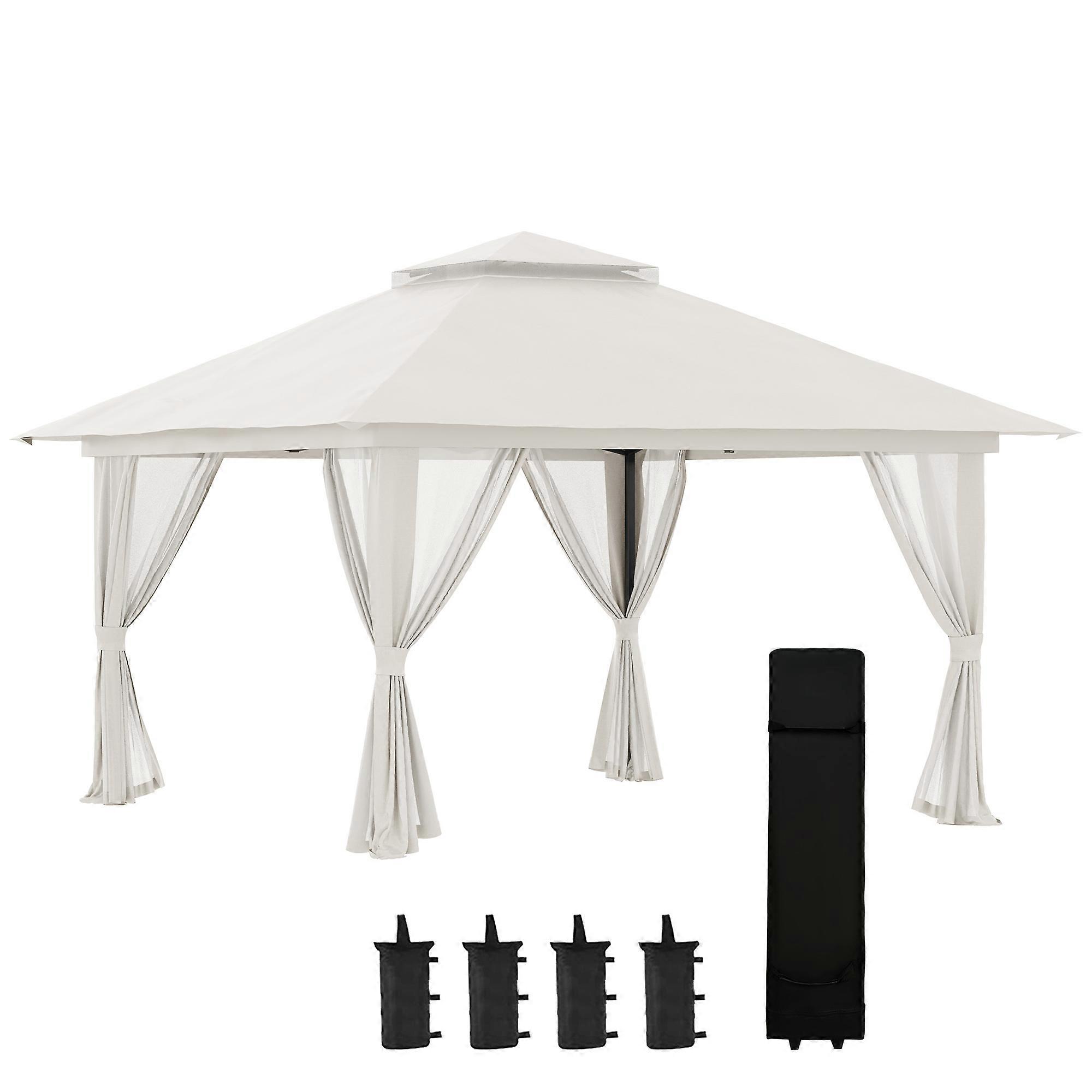 Outsunny 4x4 m Pop Up Gazebo with 4 Mosquito Net Curtains Height Adjustable UV