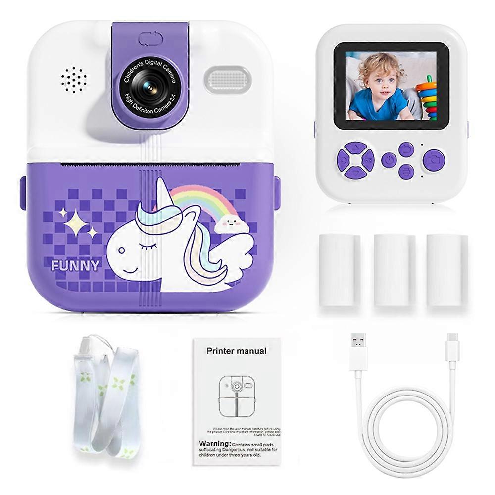 P02 2.4 Inch Instant Print Camera Cartoon Animal Pattern Flip Lens HD Camera for Kids with 32GB