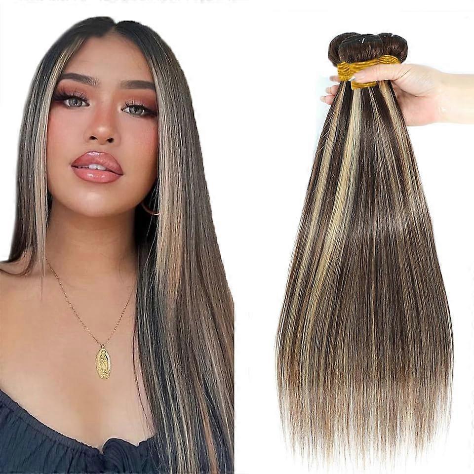 P4/613 Brazilian Virgin Hair Bundles Straight Human Hair Extensions Brown Blonde Highlight 20 22 24 Inch