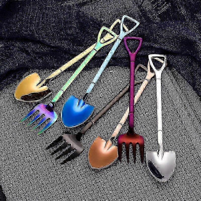 Creative Stainless Steel Shovel Shaped Spoon Fork Long Handle Coffee Spoon Teaspoon Stirring Spoon