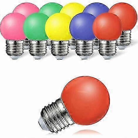 Pack of 10 E27 LED Color Light Bulb 1W Colorful Bulb 300LM Energy Saving Color Lamp 360 Angle, Red, Yellow, Blue, Green and Pink 1W LED, very natural color, Red, Yellow, Blue, Green and Pink, Mixed color, 2 pcs for each color. E27 socket, plug and play, very convenient. With soft and comfortable light to protect your eyes. Safty and rest assured. Have good heat dissipation and stay low temperature while using. Durable, their lifespan is three to four times longer than that of a traditional halogen lamp. Suitable for shop windows, living rooms, offices, hotels, shops, exhibition spaces, landscaping, etc. Spare energy The 1W G45 LED bulb can replace 8 watt bulbs and save more than electricity cost. Your perfect choice for bulbs for indoor or outdoor use. colored light The set includes: 2x red / 2x yellow / 2x green / 2x blue / 2x pink. E27 socket, decorative and design light. E27 LED bulbs drop wide application for patio and wedding decor bulbs, lanterns, porch lights, outdoor garden parties, gazebos, pergolas and more.