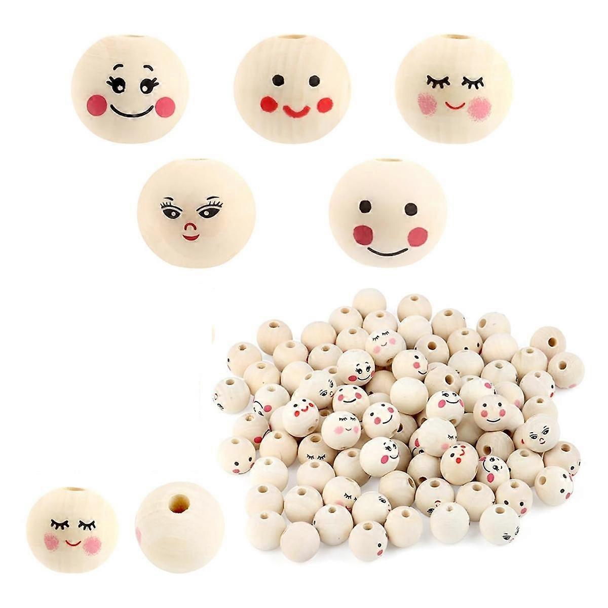 Pack of 100 Wooden Beads with Face, 20 mm Wooden Balls with Hole for Threading, Wooden Heads for Worry, Wooden Beads