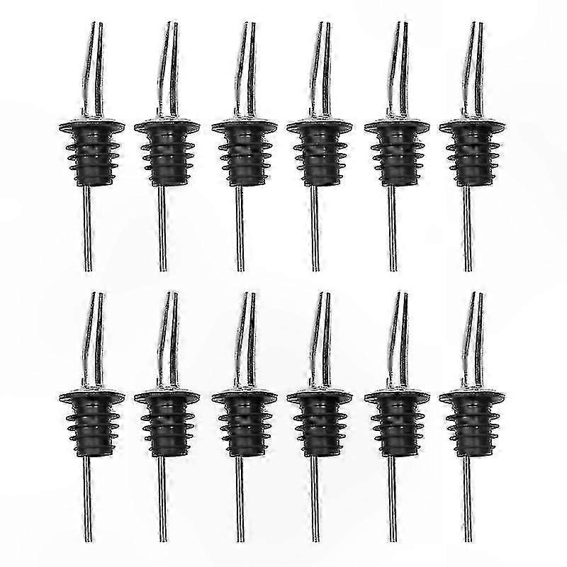 12-Pack Stainless Steel Bottle Pourers with Tapered Spouts and Rubber Dust Caps for Liquor, Bar, and Restaurant Use