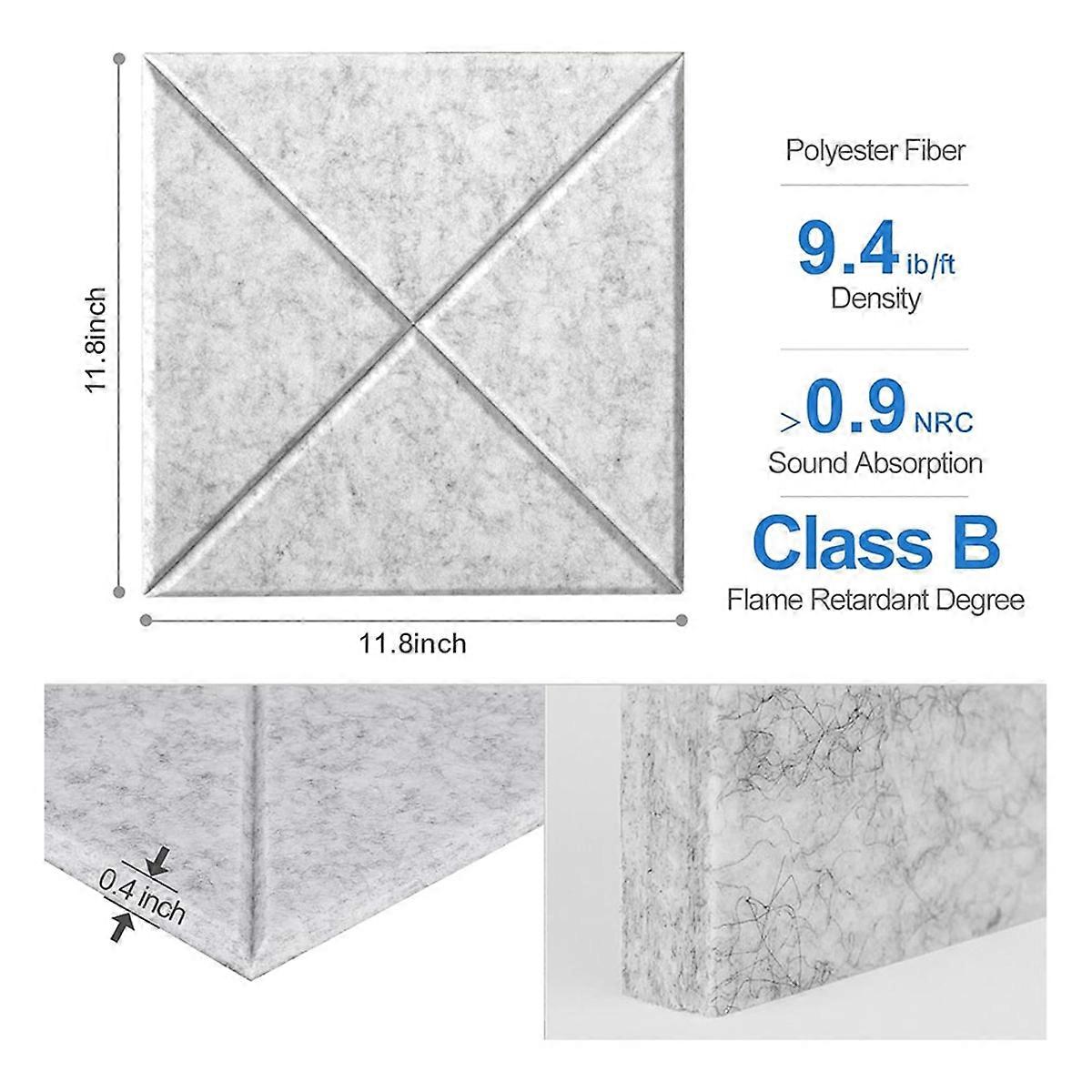 12Pack Acoustic Panels, 12x12x0.4Inch Sound Proof Foam Panels,Gray