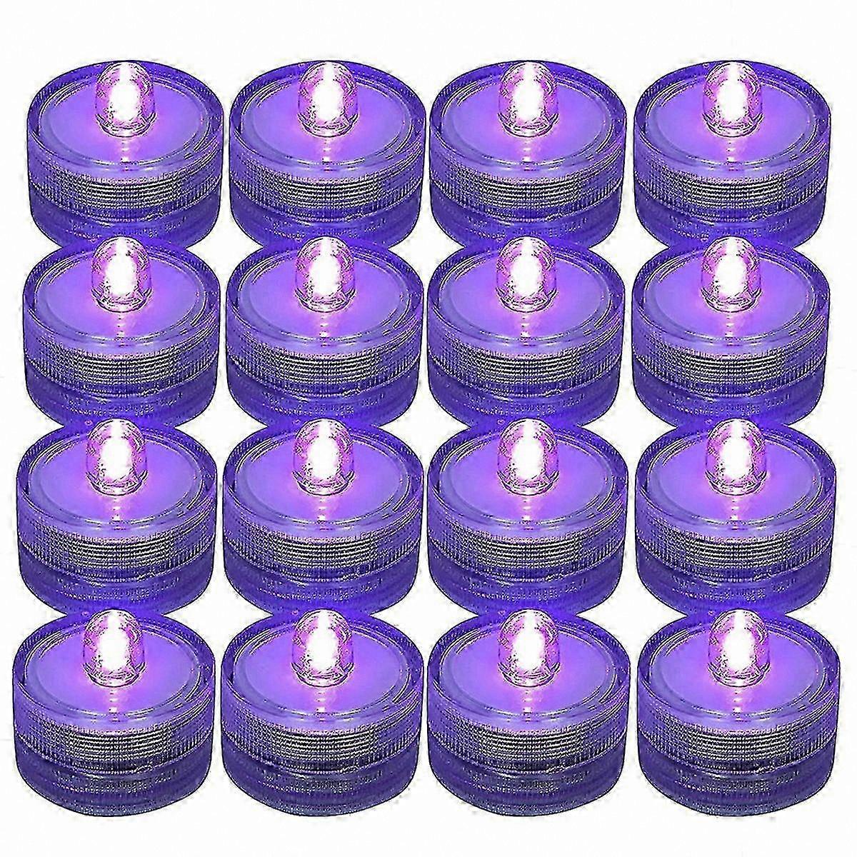 12 Pack Waterproof LED Tea Lights, Purple Submersible Flameless Candles, Battery Operated for Underwater Use