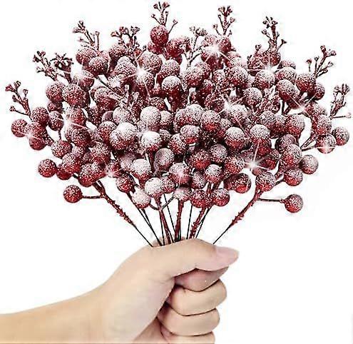 Pack of 16 Artificial Frosted Red Berry Picks, 22cm Christmas Glitter Berries Stems Snowy Holly Berry Branches for Xmas Tree Decoration DIY Crafts Wre