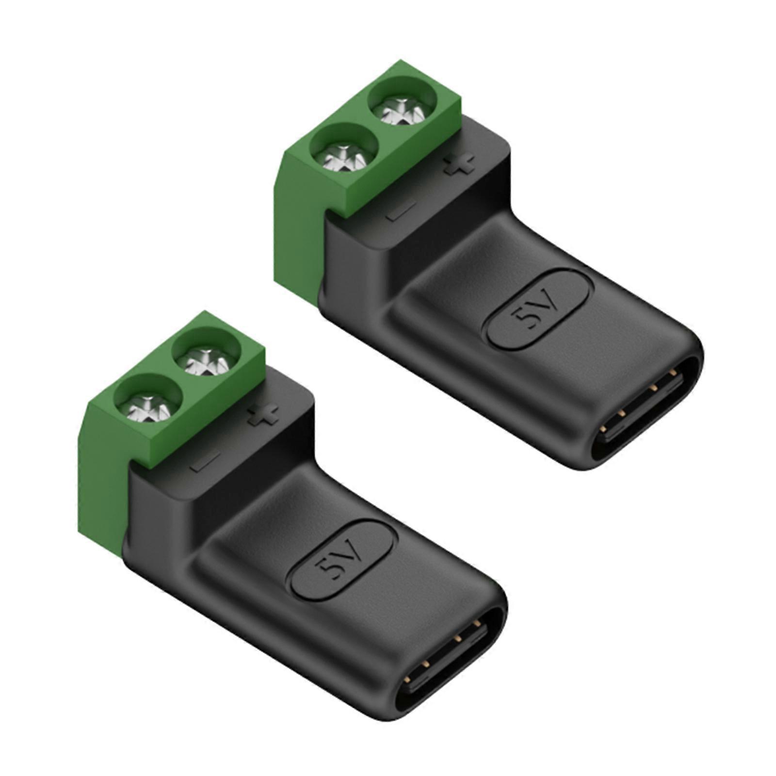 Pack of 2 Compact Type C Power Adapters 5V3A Output with Green Quick Connecting Terminals for Charging Toys LED Strips Multicolor