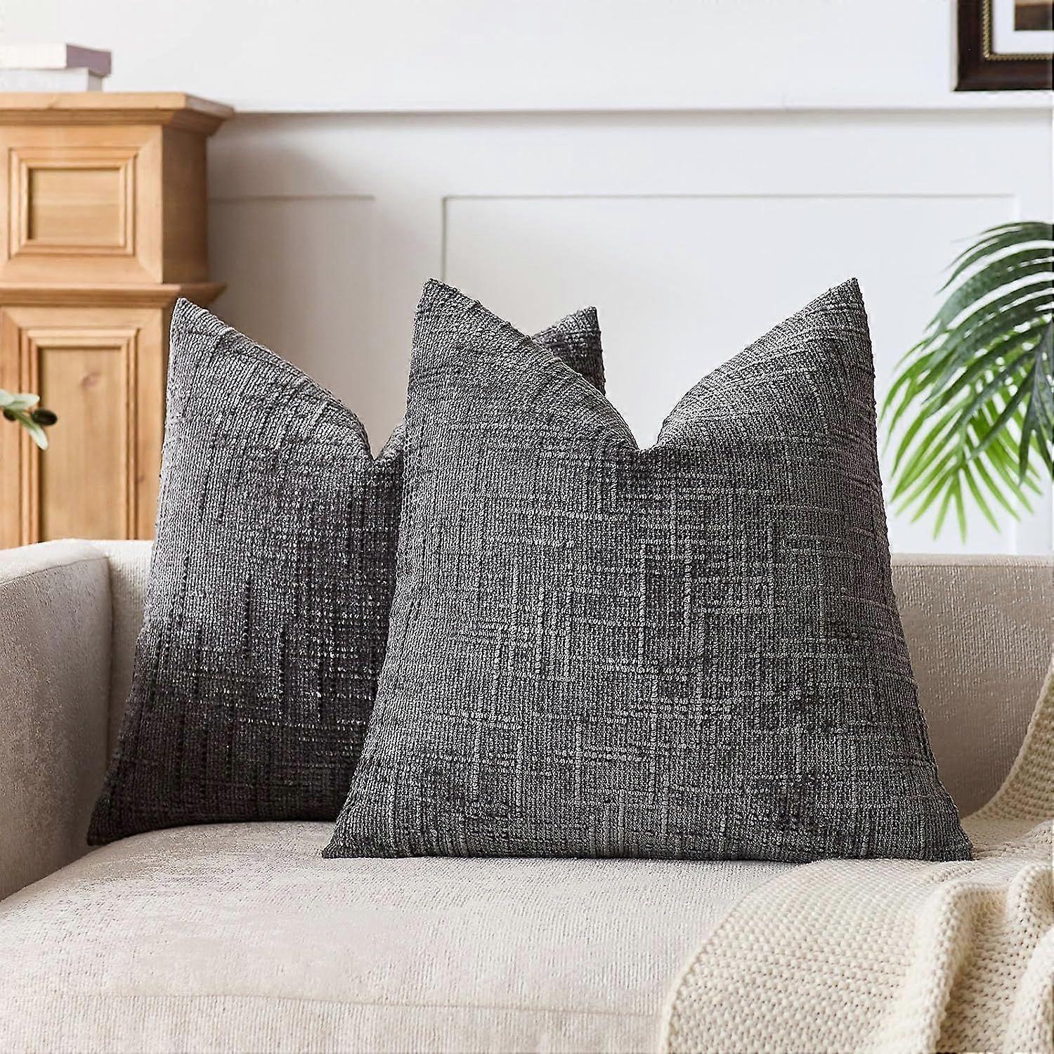 Pack of 2 Decorative Square Throw Pillow Covers 18x18 Soft Textured Chenille