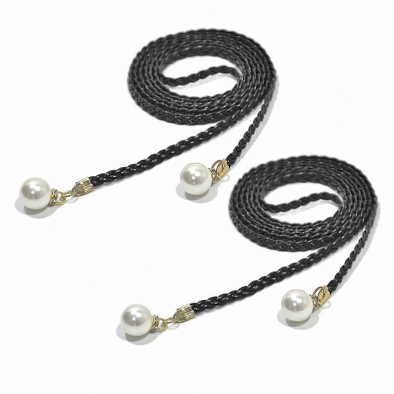 White Silver 2-Pack Woven Waist Cords with Pearl Accents for Bohemian Style Fashion Enthusiasts Eye-Catching Accessory