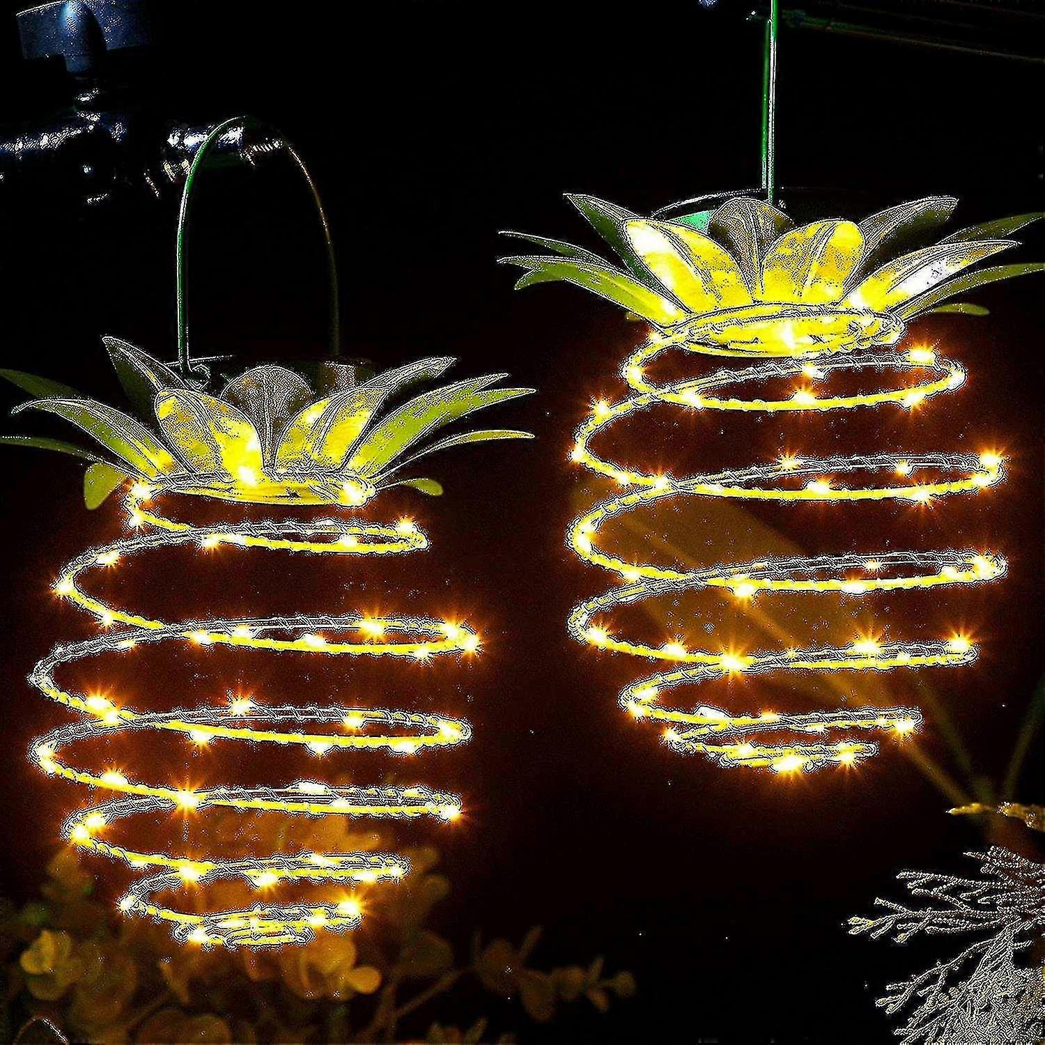 2 Pack Solar Metal Pineapple Lights 60 Led Pineapple Outdoor Hanging Wire Light Waterproof