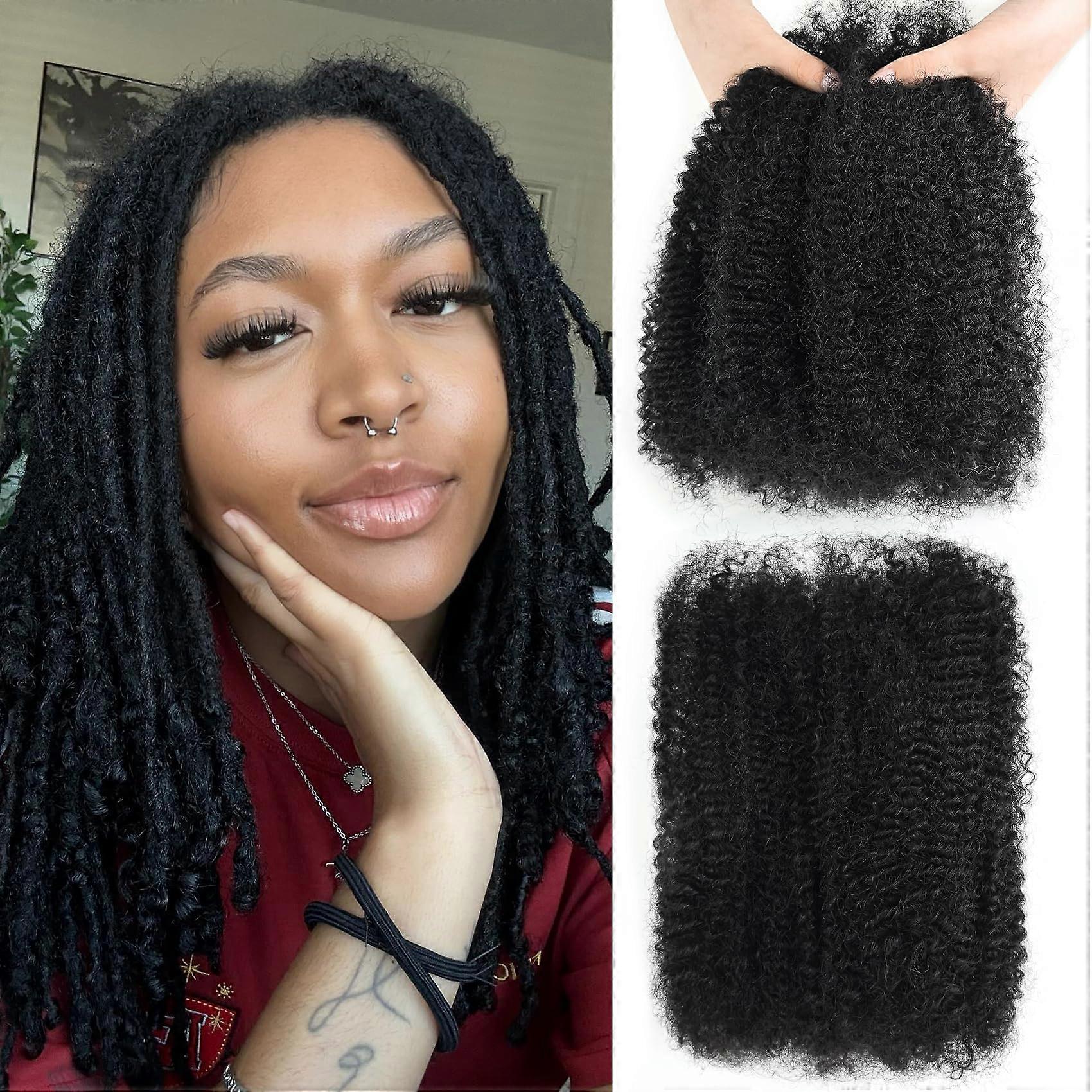 Afro Kinky Curly Human Hair Bundles 2 Pack 18 Inch Black 100% Human Hair for Braiding and Dreadlocks