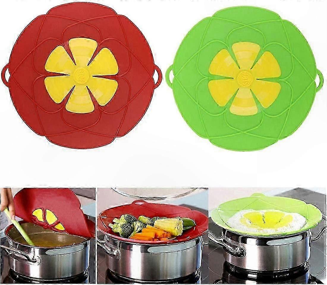 2-Pack Spill Stopper Lids, Boil-Over Protection, 10.2 Inch, Green and Red