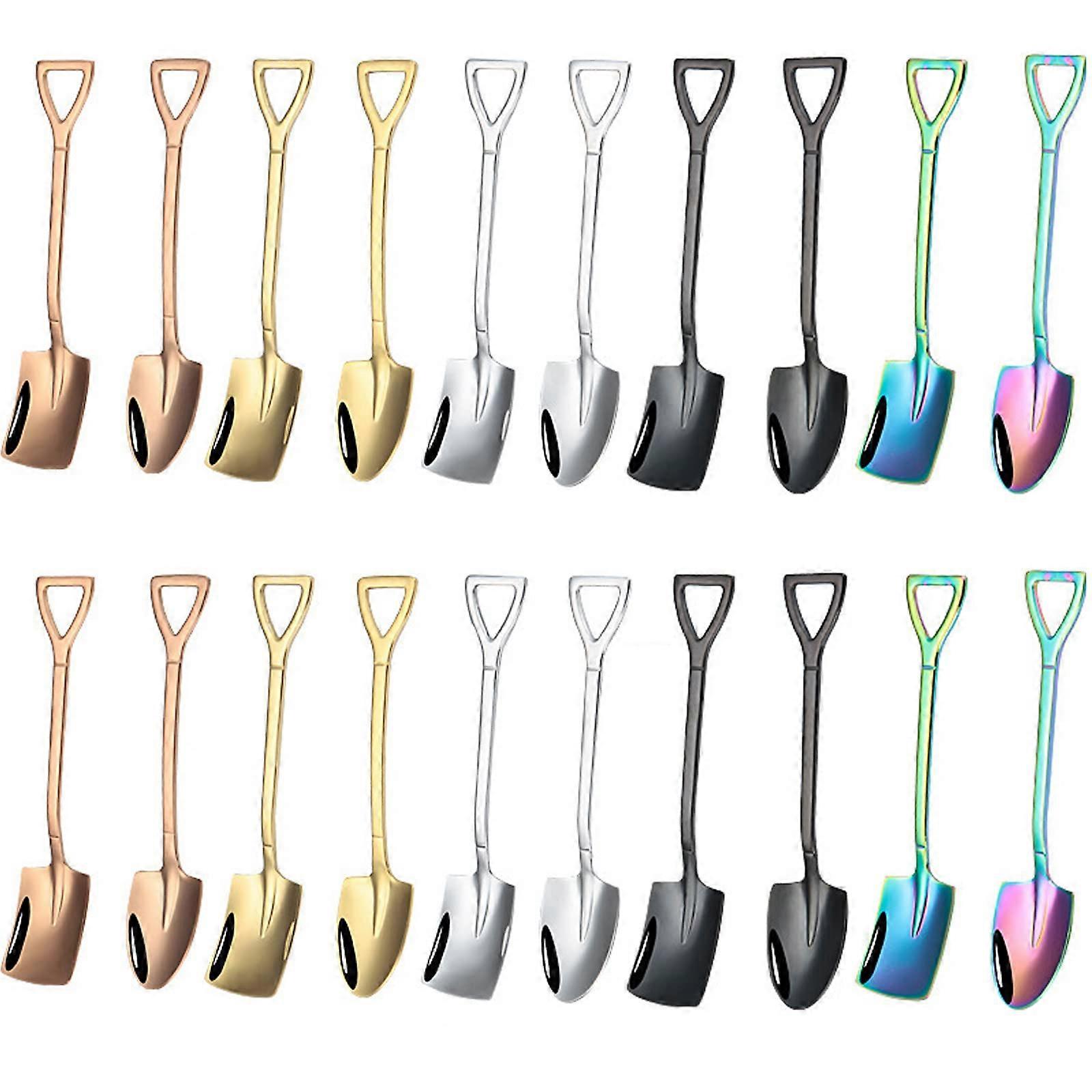 Pack of 20 Stainless Steel Shovel Shaped Spoons for Coffee, Tea, and Dessert, Colorful Spade Design for Cafes and Bars