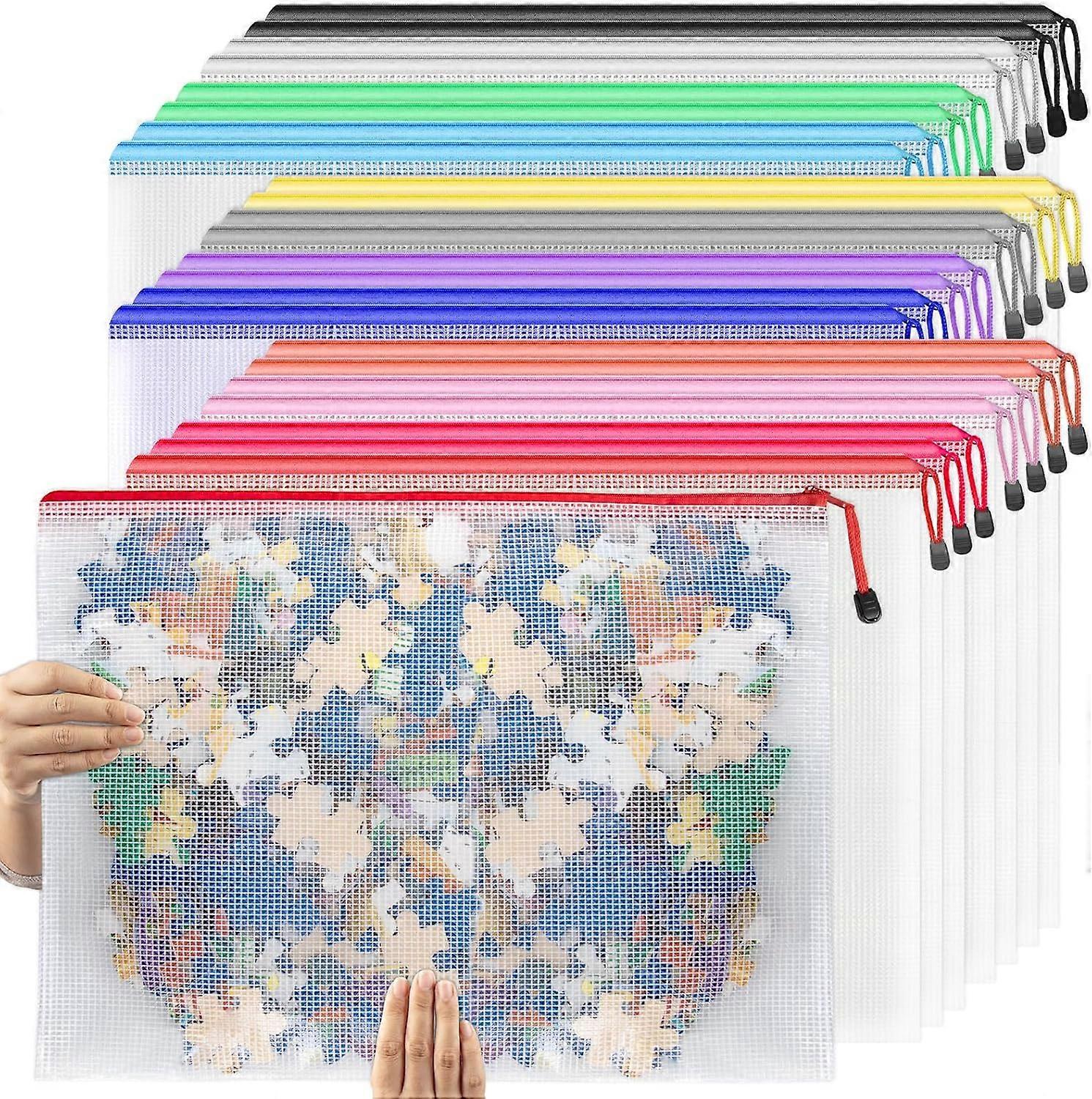 24 Pack 12 Colors Zipper Pouches for Organizing, A3 Size (16.9 x 12.4), Big mesh Bags,Zipper Bags for Puzzles & Board Gam