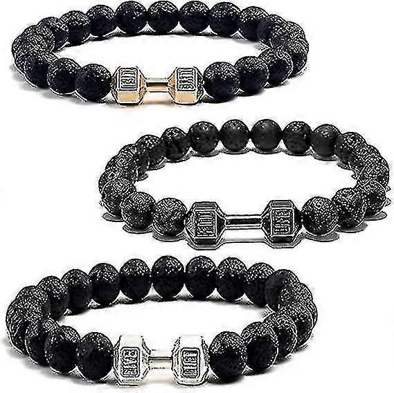 3-Pack Dumbbell Bracelets, High Quality Beaded Bracelets for Men HG