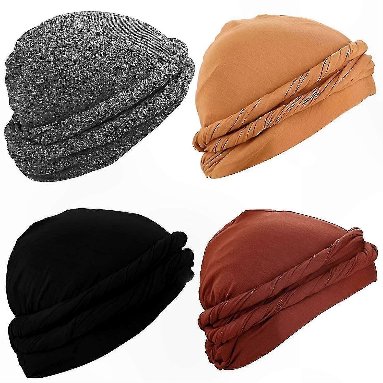 4-Pack Men's Turban Head Wraps Vintage Style Elastic Modal Satin-Lined Hair Scarf in Black Wine Red Army Green