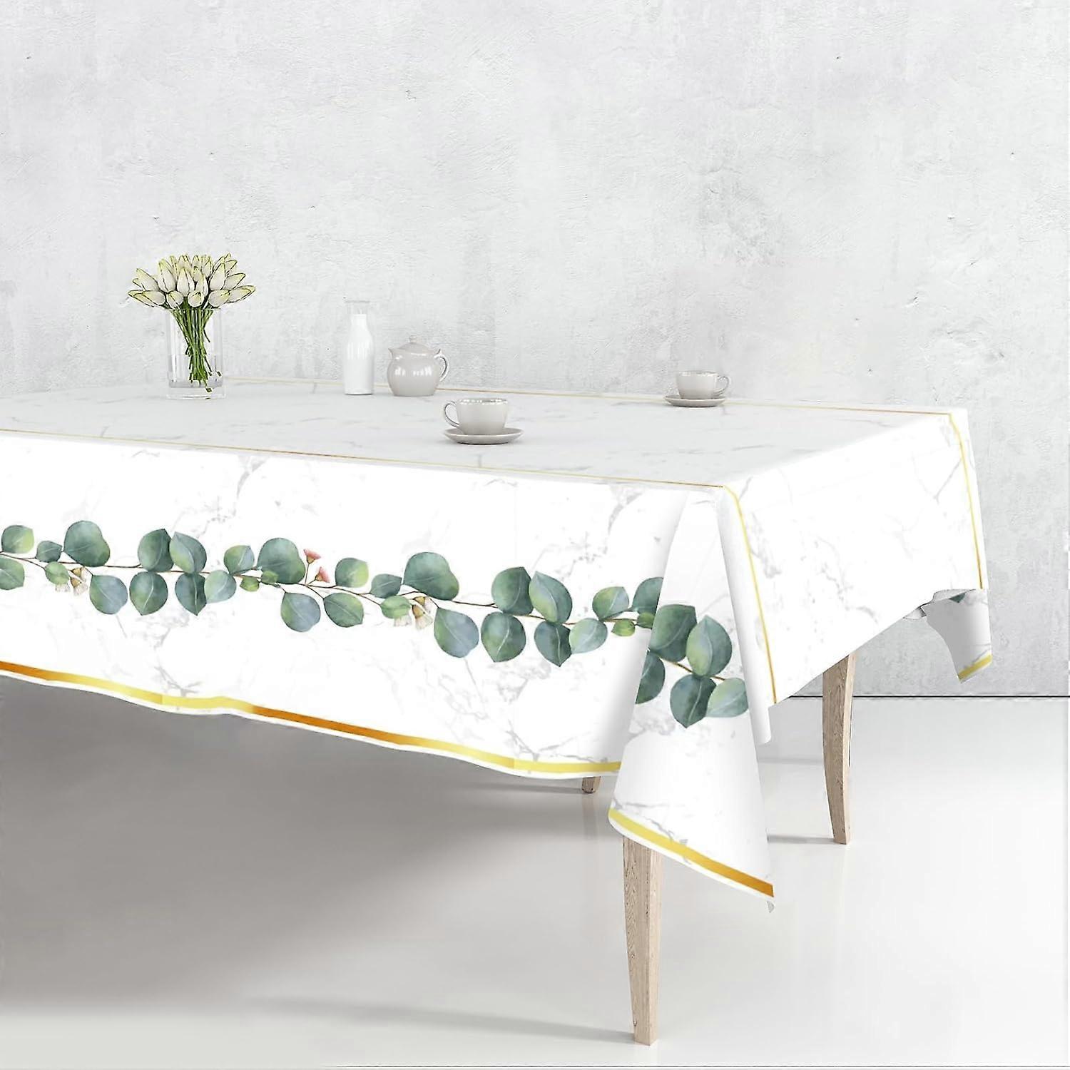 4 Pack Greenery Jungle Party Tablecloths for Rectangle Tables, Waterproof Disposable Rectangular Table Cloths Covers Eucalyptus Decorations,