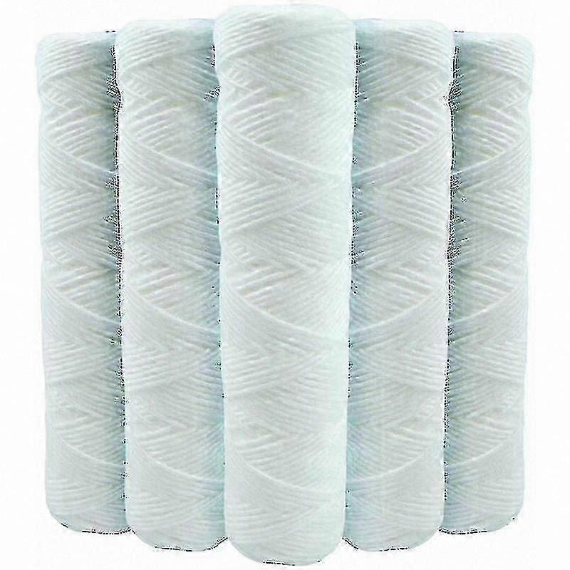 Pack of 5 micron 93/4 coiled sediment filter cartridges for standard 93/4 or 10 filter holder bowls. Designed for installation on hot or cold water systems, these anti-sediment cartridges effectively filter solid particles and fine organic impurities. Features 5 micron 93/4 wound filter cartridges: Economical and durable water filtration solution. Robust and resistant mesh construction with no fiber shedding. High temperature resistance. Made in Italy and ACS certified. High-quality wound polypropylene material provides efficient removal of fine particulates. Compatible with 9 3/4 and 10 inch filter housings or water filtration systems. Ideal for prefiltration before activated carbon or ultrafiltration cartridges in drinking water systems, rainwater treatment for irrigation, sanitary applications, or laundry use. For installation, compatible with standard single or double transparent filter housings with brass fittings, sized 93/4 or 10. Replace cartridges at least once per year. Recommended for use as prefiltration ahead of activated carbon or membrane filtration systems. Consider using a higher micron cartridge (such as 20 micron) upstream to extend service life.