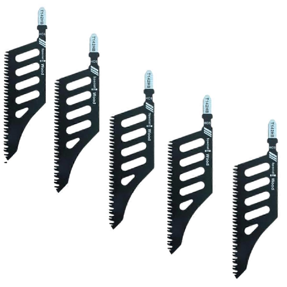 5 Pack Special Wood T142HB Curved Jigsaw Blades, Black Steel Construction,Special-Shaped Design for Wood Cutting