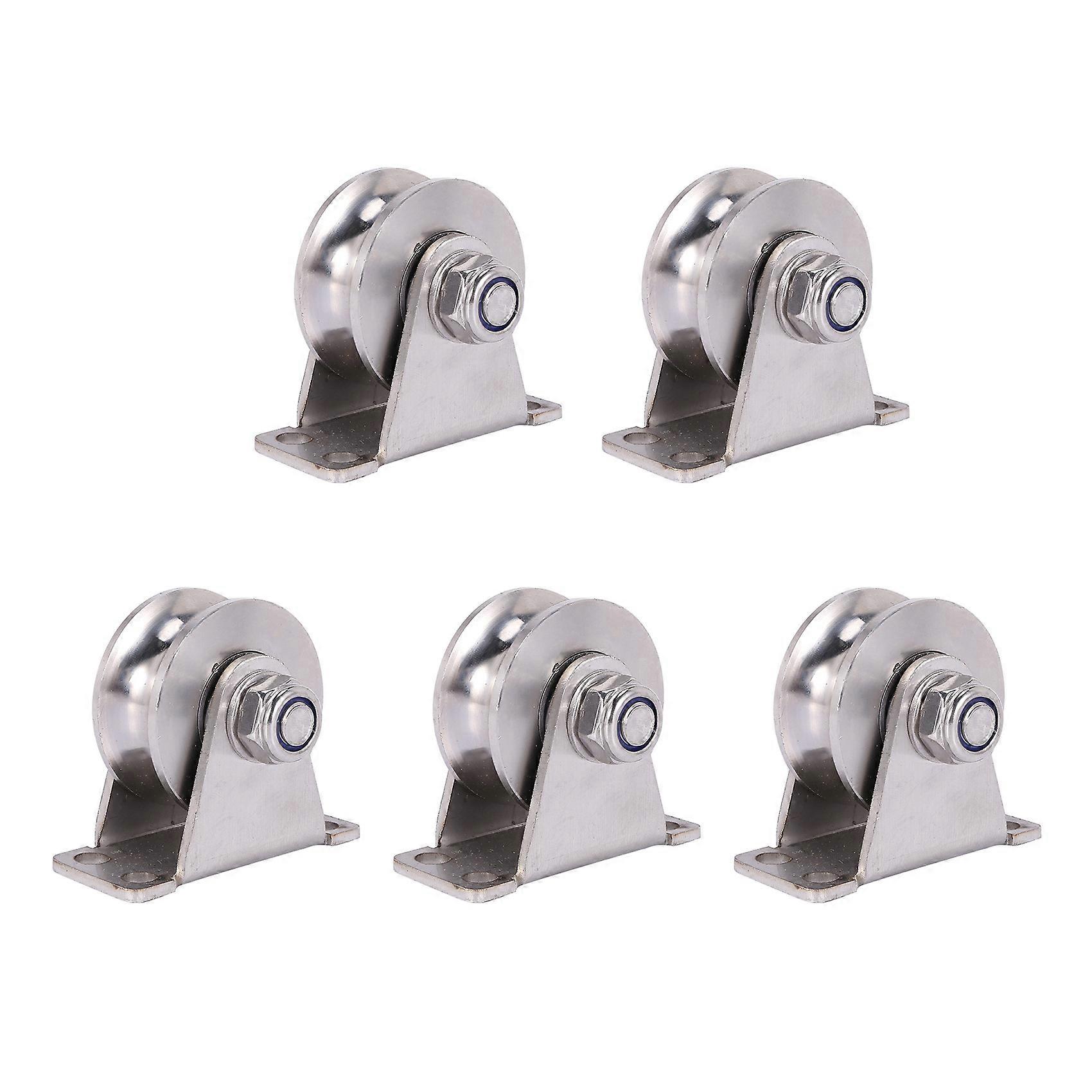 5 Pack U-Type Stainless Steel Pulley Block Mute Bearings Groove Sliding Roller Track Wheel