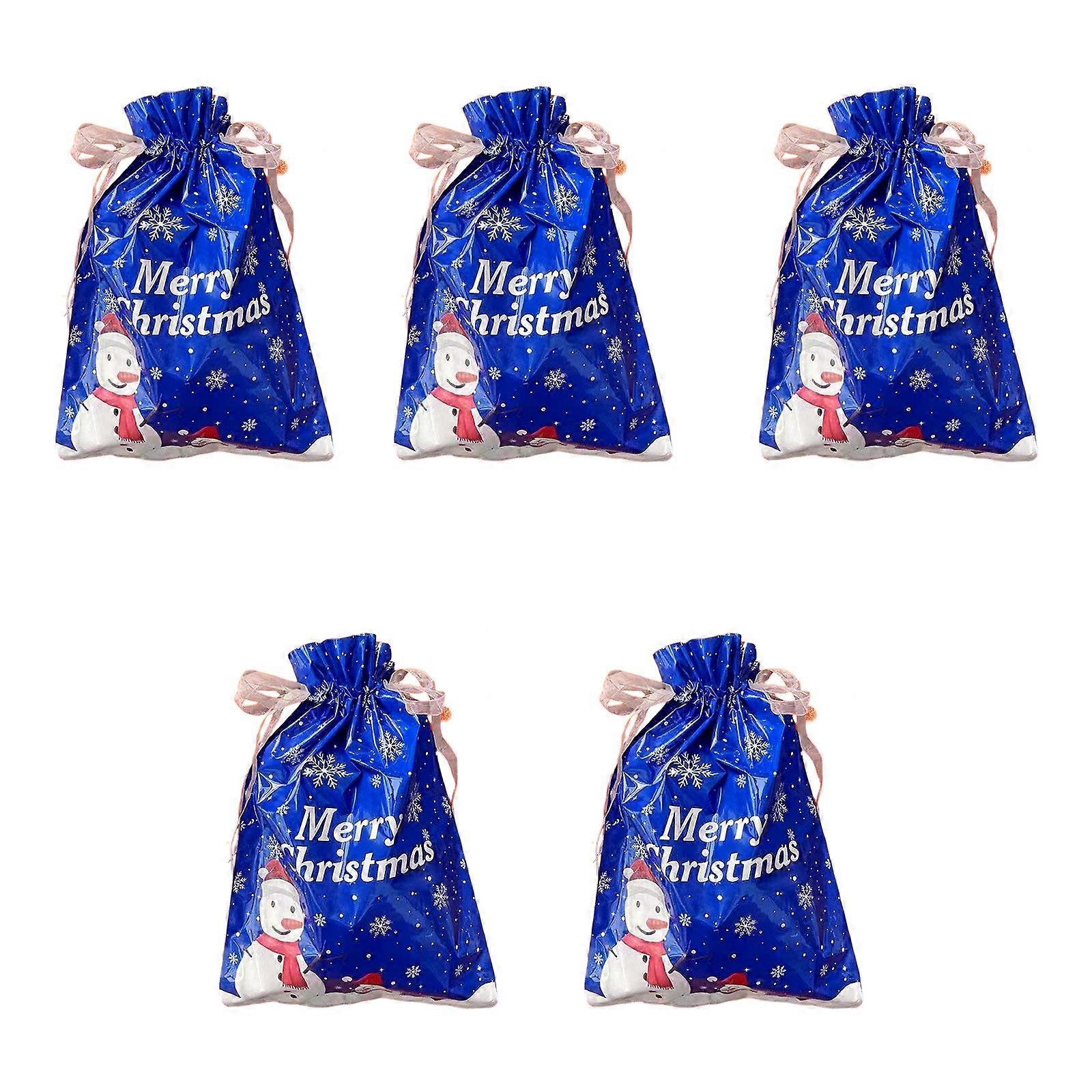 Pack of 5 Waterproof Reusable Gift Bags Drawstring Closure Holiday Party Supplies Container for Christmas Gifts Multicolor