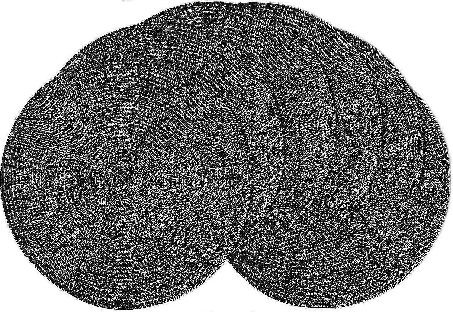6-Pack Black Round Washable Heat-Resistant Placemats for Kitchen & Dining