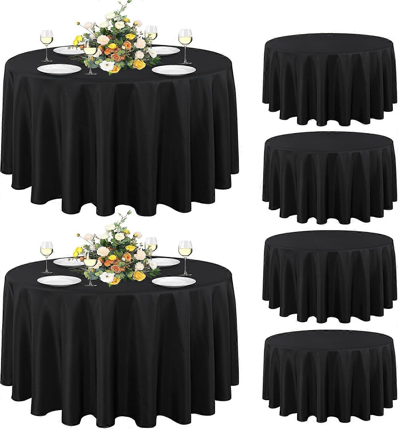 6 Pack Round Tablecloth 90 Inch Black, Stain and Wrinkle Resistant Table Cloth - Washable Polyester Table Cover for Dining Table, Buffet Par