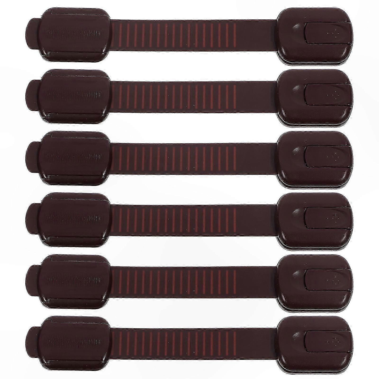 6-Pack Adjustable Safety Latches for Cabinets and Drawers, Childproof Locks, Brown