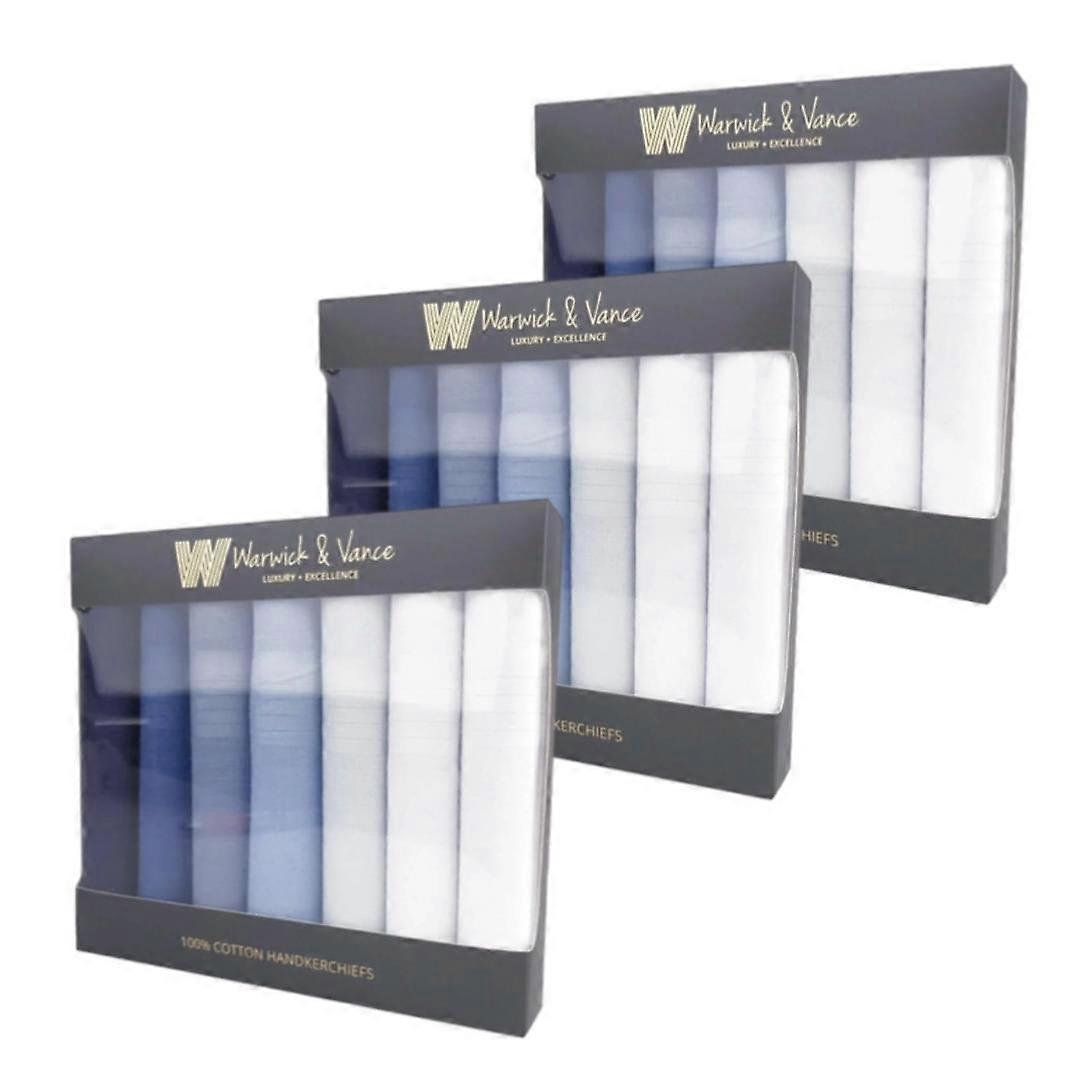 7 Pack Mens 100% Cotton Blue & White Handkerchiefs
