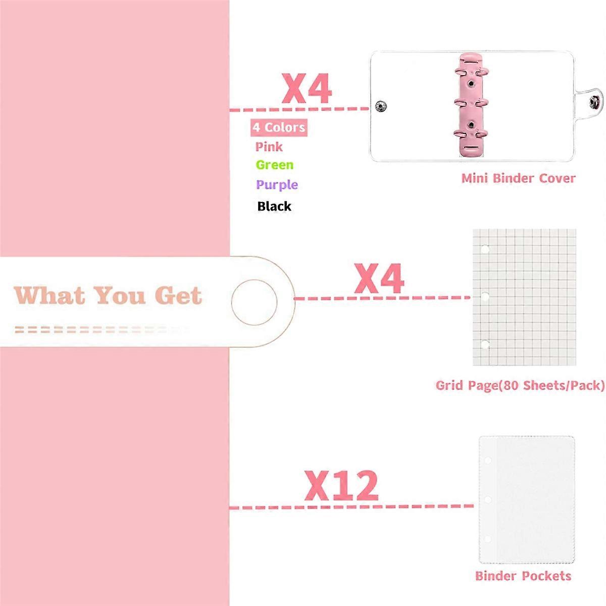 8 Pack Mini Transparent 3 Ring Binder Covers with Grid Inner Page and 24 Pcs Binder Pockets(3 Pcs/Se
