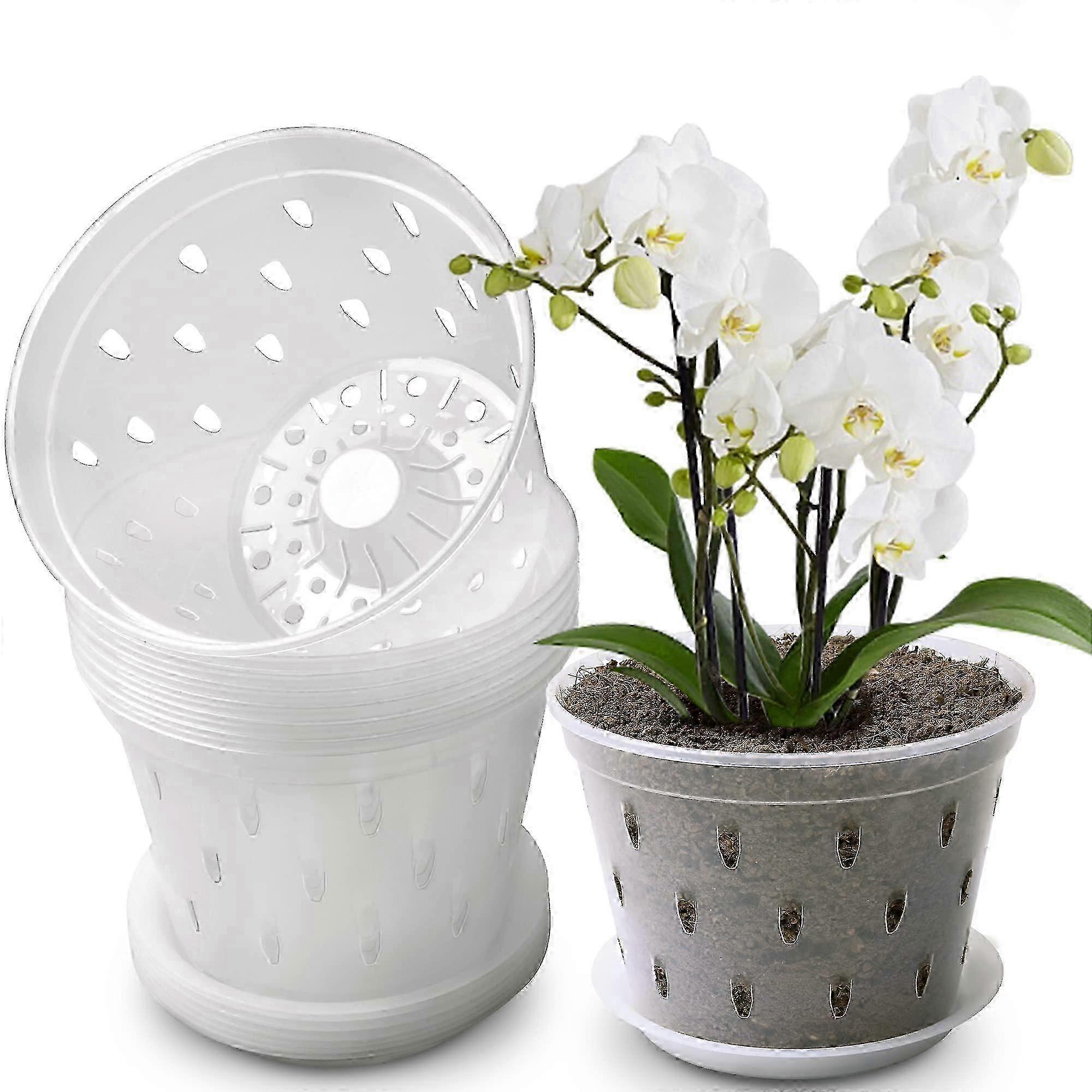 8-Pack Clear Plastic Flower Pots for Orchids, 7 Inches in Diameter with Drainage Holes