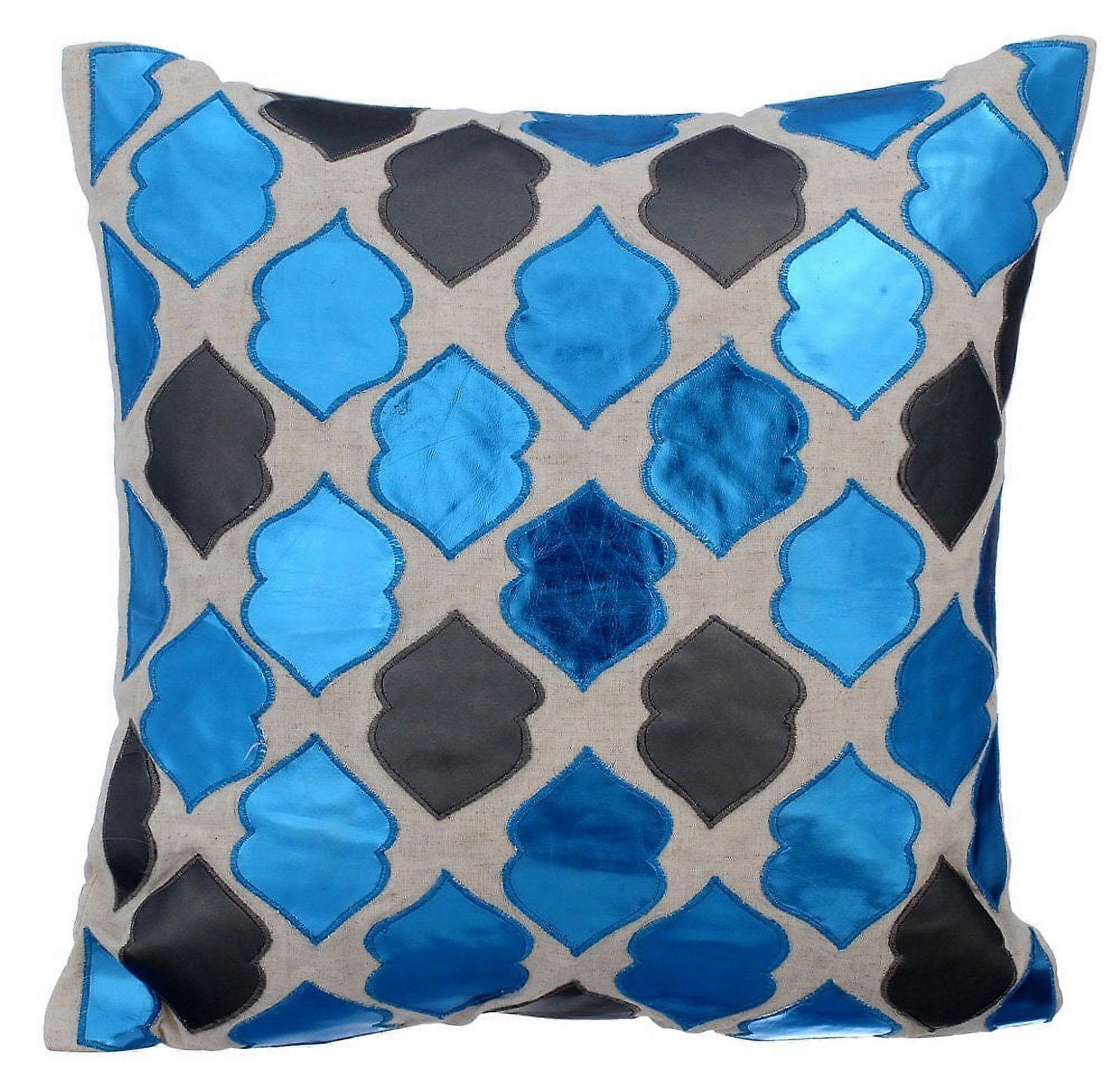HomeCentric Throw Pillow Cover Pack of 2, 14x14 inch, Blue Faux Leather, Zipper, Compatible with Dream Magnet, Abstract Design