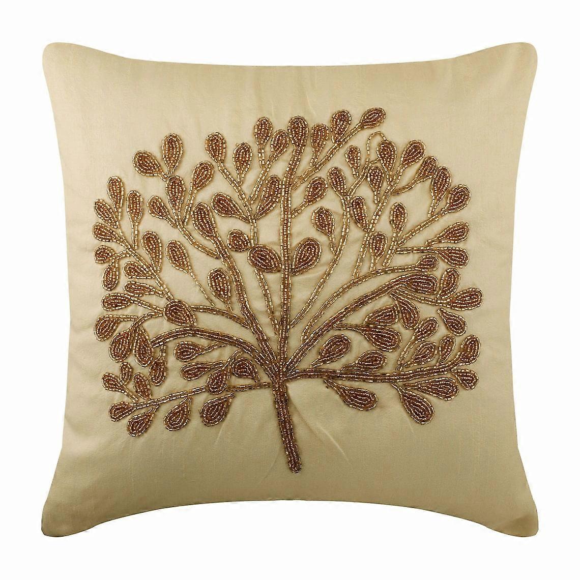 HomeCentric Gold Pillow Cover Pack of 2, 22x22 inch, Beaded Tree Design, Art Silk Square, Compatible with 22x22 Cushions