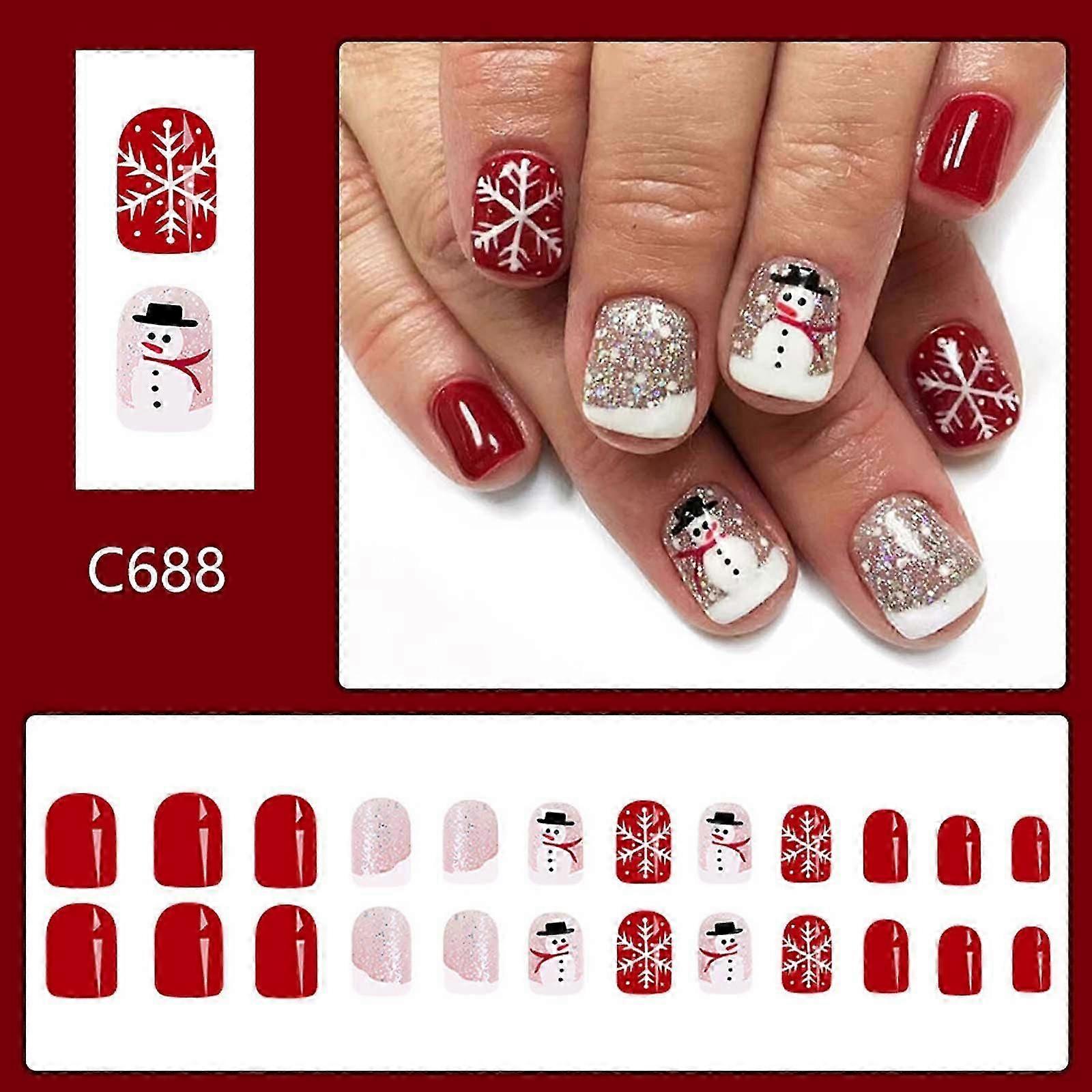 Pack Of 24 Artificial Nails Short Christmas Press On Nails For Sticking Christmas False Nails Full Cover Artificial Nails With Nail Glue Flye2700