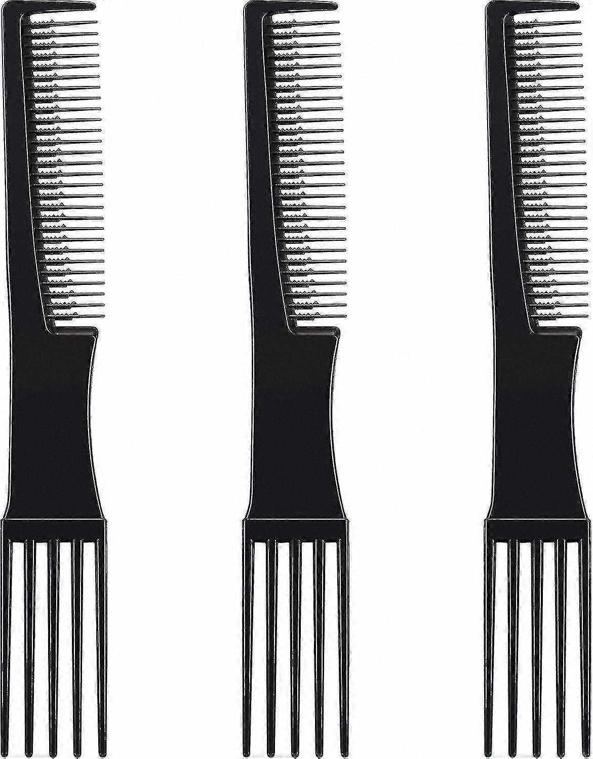 3-Pack Styling Combs with Double-Ended Rake and Fork Prongs for Hair Lifting and Shaping