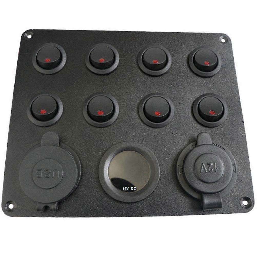 Cat Eye Switch Panel for Car Use 8 Gang Rocker Switch with Dual USB Ports