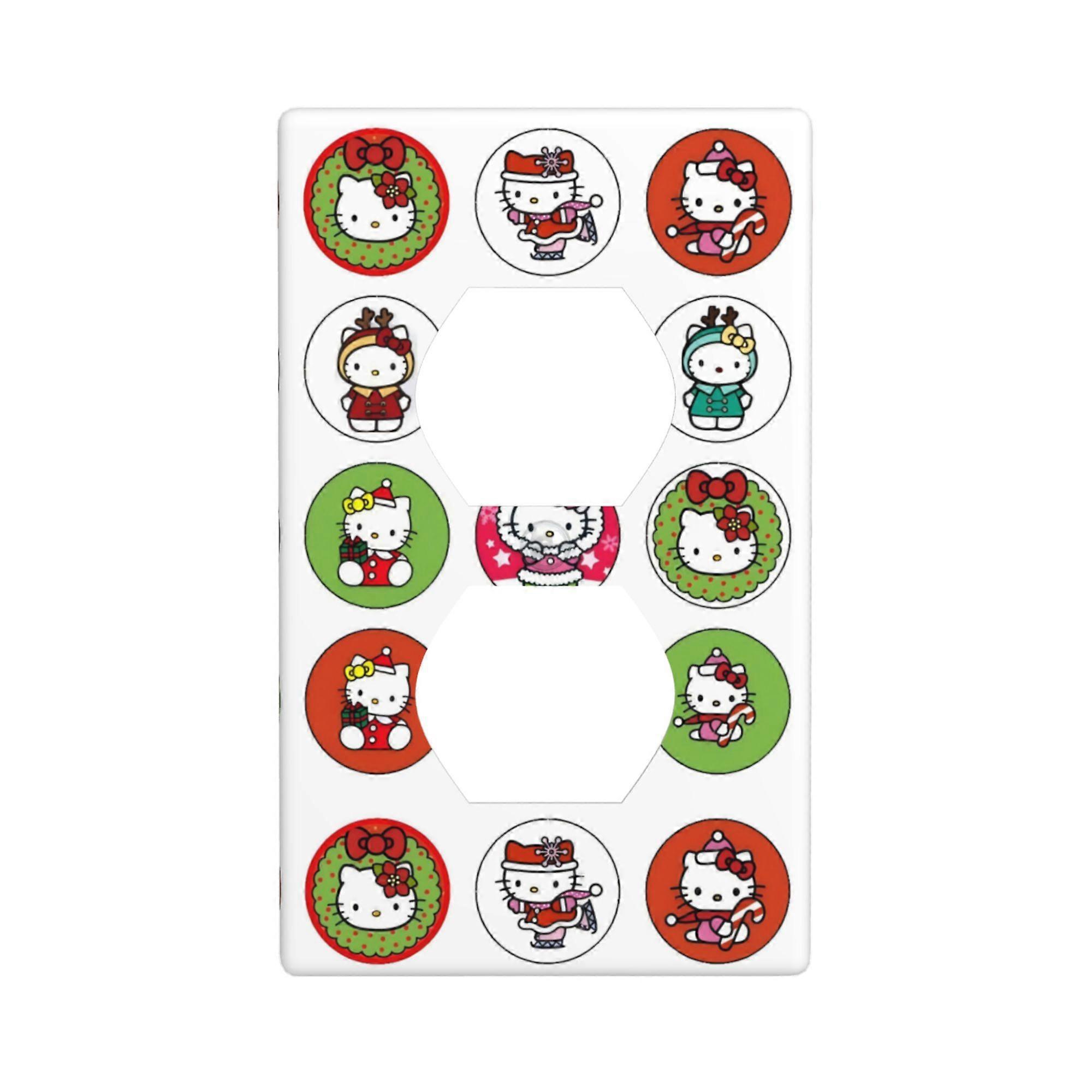 Hello Kitty Christmas Print 2-Socket Wall Panel, PC Material, 2.76x4.5 Inch, Compatible with Home, Bedroom, Kitchen Decor
