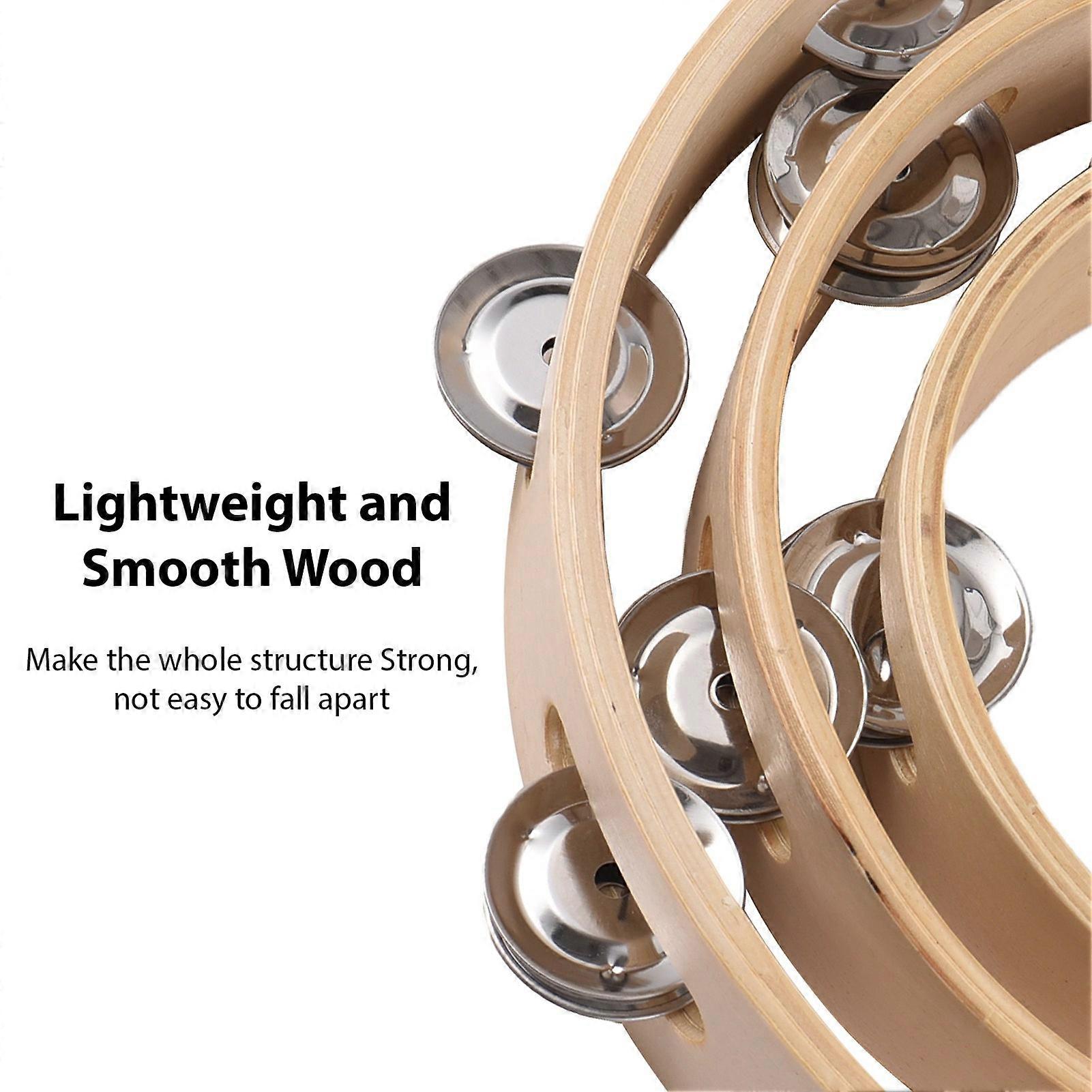 6 Inch Wooden Tambourine with Metal Jingles Natural Color