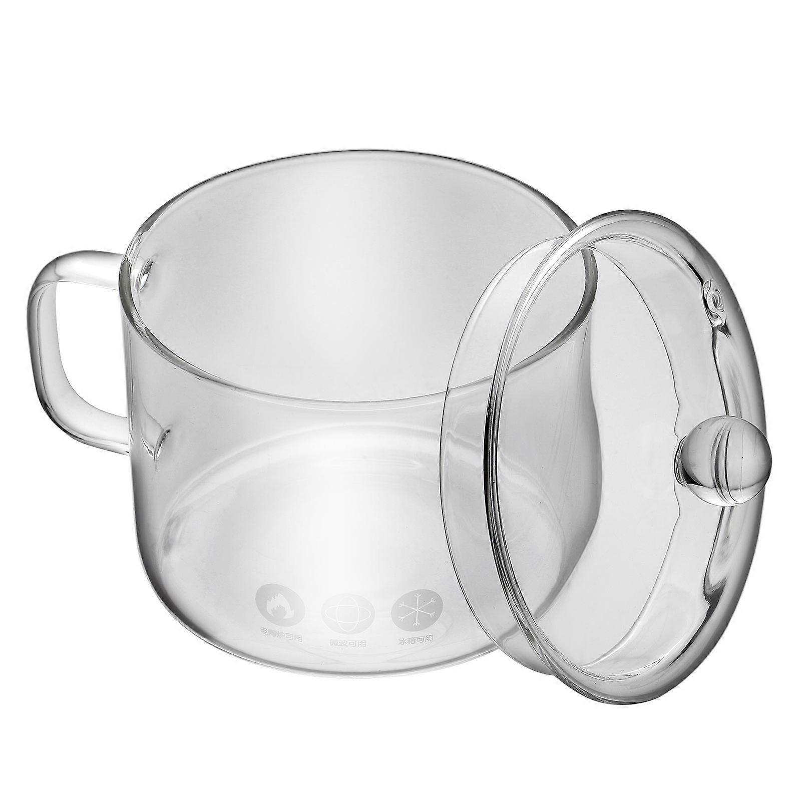 Glass Sauce Pan Heat-Resistant Glass Pot Cooks Oven Compatible Disinfection Cabinet Compatible Non-Slip Lid Design 7.1×5.1×5.7in 1Pack