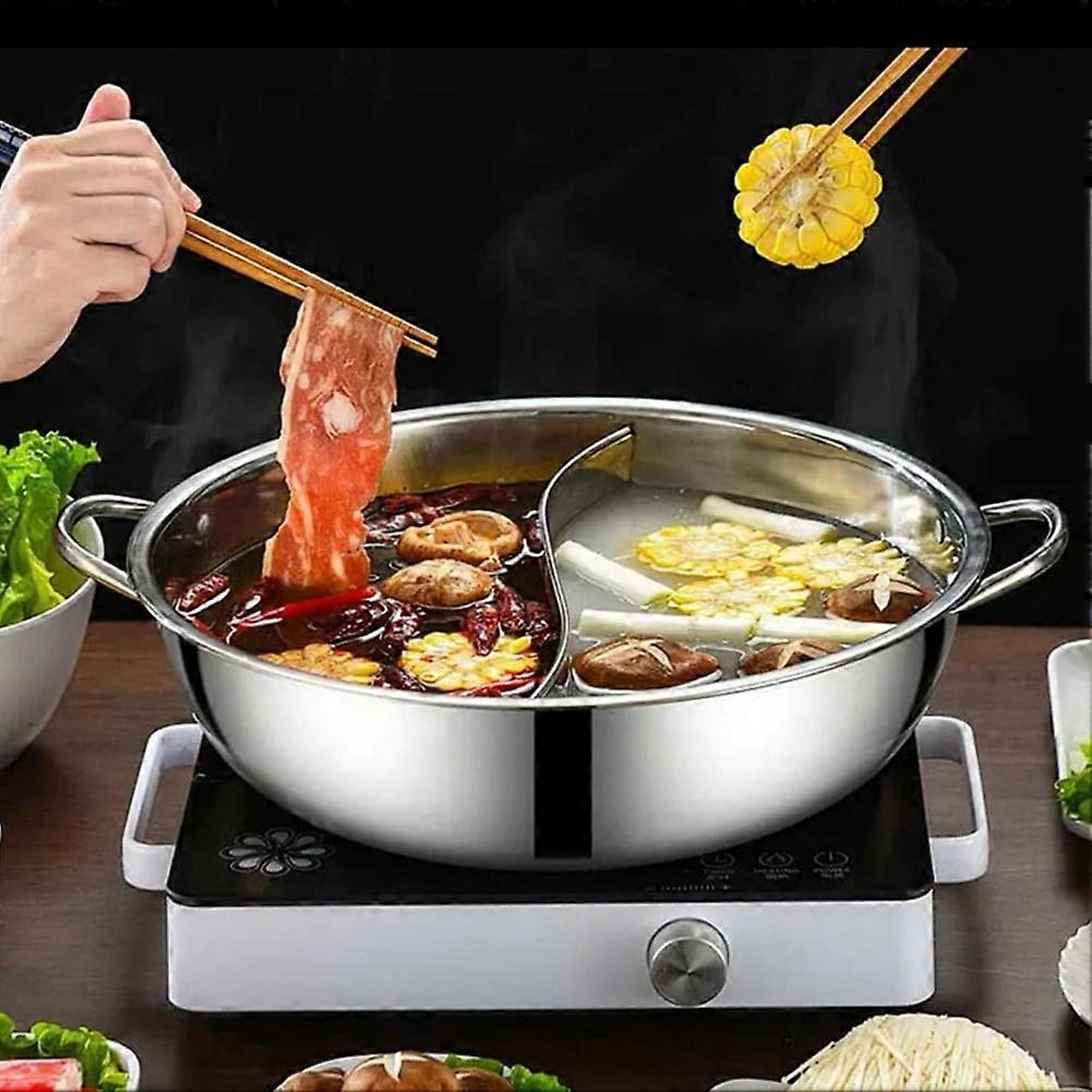 30cm Hot Pot Twin Divided Stainless Steel 28cm Cookware Hot Pot Ruled Compatible